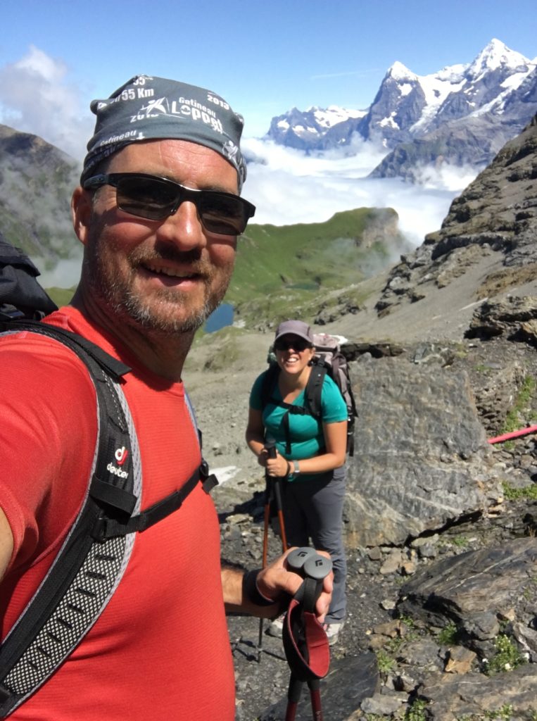 La Via Alpina est un réseau de randonnée pédestre alpine qui relie Trieste à Monaco, et qui propose cinq itinéraires sur l’ensemble des huit pays alpins : la Slovénie, l’Italie, l’Autriche, l’Allemagne, le Liechtenstein, la Suisse, la France et Monaco. En Suisse, la Via Alpina part de Vaduz pour rejoindre Montreux : 390 km de sentiers découpés en une vingtaine d’étapes, 23600 m de D+ pour 24800 m de D-, des chiffres qui donnent le vertige… Par manque de temps, nous avons choisi de parcourir l’un des tronçons les plus spectaculaires qui se trouve tout près de chez nous, dans les Alpes bernoises : 35 km de sentiers alpins, entre Mürren à Kandersteg.