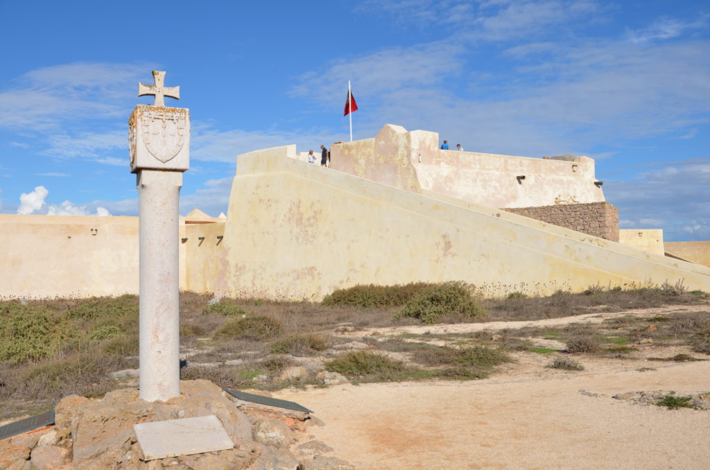 Après un déjeuner au sympathique café Pau de Pita, nous nous rendons à pied par la Praia de Mareta jusqu’à la forteresse de Sagres, porte d’entrée d’un cap magnifique dont les falaises abruptes dominent l’océan. Il n’y a pas grand-chose à voir dans le fort, si ce n’est un grand cadran solaire, une minuscule chapelle et une élégante boutique de souvenirs. On y vient surtout pour la vue spectaculaire offerte par la balade qui fait le tour du cap brulé par le soleil et balayé par les vents. Quelques pêcheurs tentent de ramener les sardines du diner, surveillés par la silhouette du Cap Saint-Vincent que nous visiterons demain.