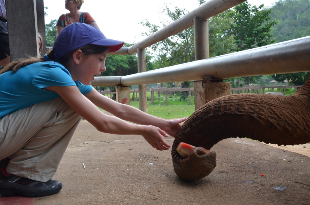 Jour 3 | CHIANG MAI : changement de décor, nous partons visiter l’Elephant Nature Park situé à une soixantaine de kilomètres de Chiang Mai, dans les montagnes de Mae Taeng. Il s’agit d’un sanctuaire qui recueille des éléphants autrefois exploités ou maltraités. Car c’est malheureusement une réalité pour cet animal iconique de la Thaïlande : l’éléphant est devenu un animal de foire, employé à tort pour promener les touristes sur leur dos lors de treks ou exhibés dans les cirques. Après une heure de route, nous arrivons à la réserve qui compte plus de 75 pensionnaires. Accueillis par une guide qui nous présente le fonctionnement et les actions du parc, nous poursuivons la visite par le nourrissage des éléphants qui se régalent de pastèques fraiches. Un moment unique forcément apprécié par les enfants ! Puis nous partons découvrir la réserve à la rencontre des pachydermes qui déambulent librement dans une vaste prairie, au milieu des montagnes de Mae Taeng.