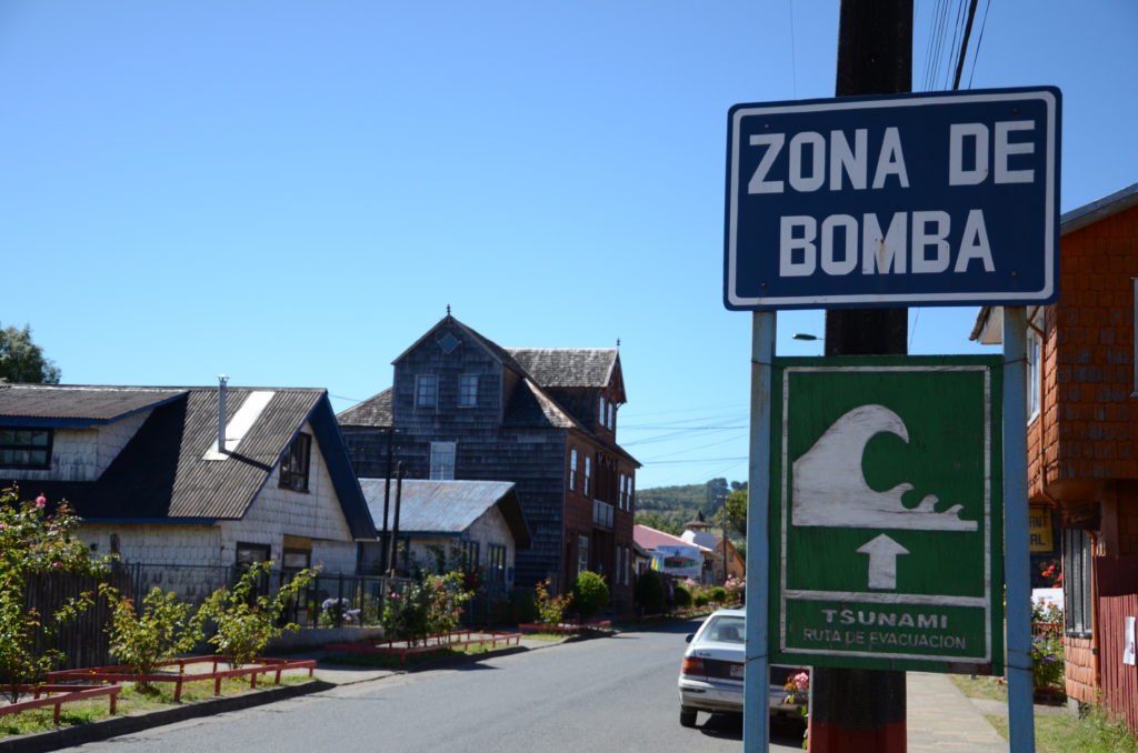 Nous rejoignons le centre d’Ancud pour déjeuner au cœur de son marché couvert. Historiquement, Ancud était la capitale et la place forte de l’ile de Chiloé. Sa position sur la route du Cap Horn en faisait une escale stratégique. L’ouverture du canal de Panama, puis le transfert de la capitale vers Castro en 1982 lui a sans doute valu un lent déclin. Nous avouerons que nous ne sommes pas spécialement tombés sous le charme de la ville, lui préférant de loin Castro.