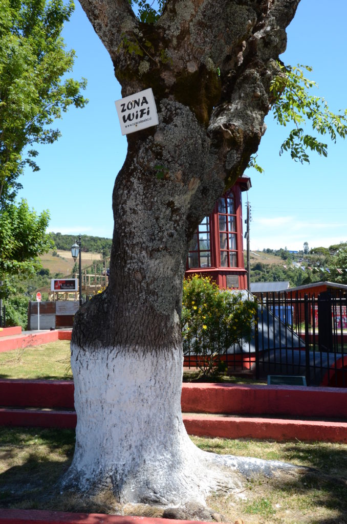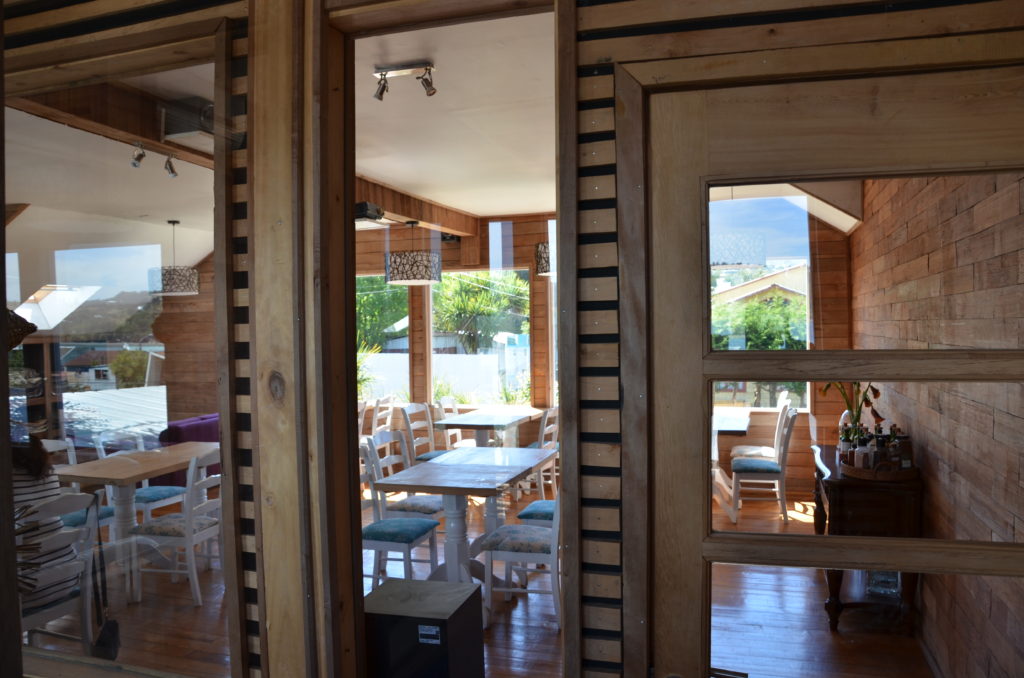 Nous reprenons le traversier pour Dalcahue où nous avions prévu de visiter l’iglesia de Nuestra Senora de los Dolores mais elle est en complète rénovation… Dommage, ce sera pour une autre fois. Sur la place de l’église, nous en profitons pour faire une pause gourmande au charmant café-boutique Refugio del Navigante.