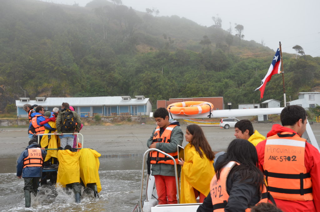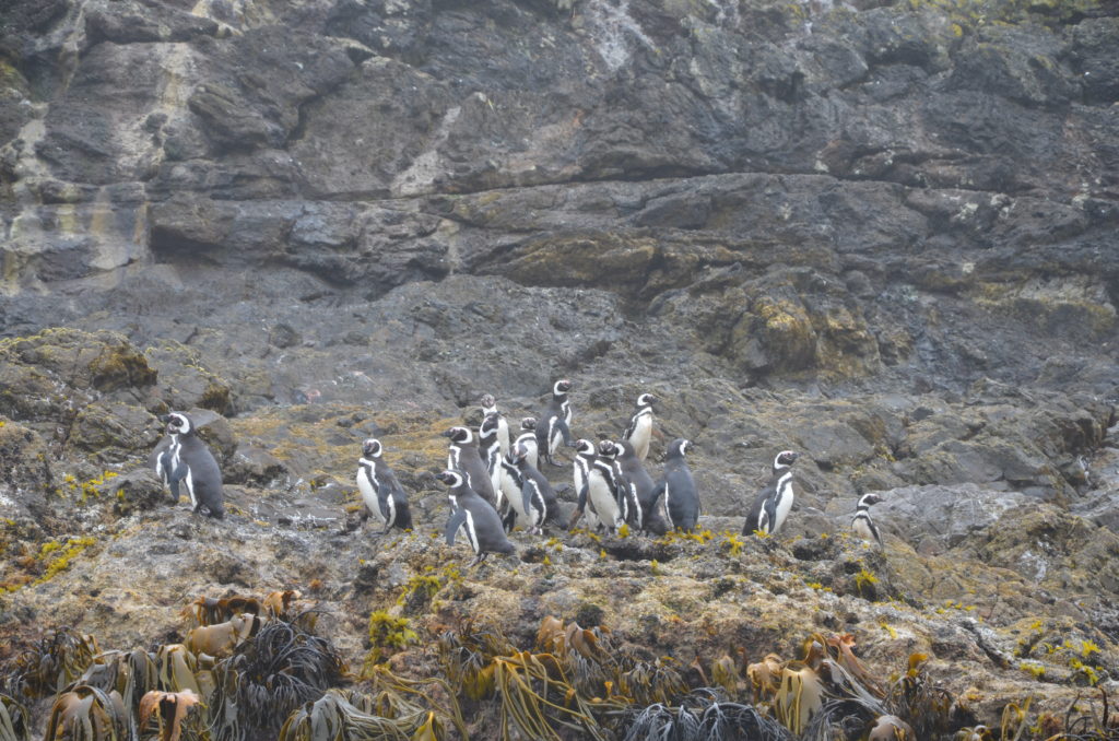 Jour 4 | Ancud : changement de décor, nous quittons la terre ferme pour une excursion au nord de l’ile, et découvrir la réserve des pingouins de Puñihuil. On ne se cachera pas que c’est l’une des attractions touristiques de l’ile. La brume de mer s’est invitée dans le ciel, mais cela confère un certain charme au site. Nous avions réservé auprès de la compagnie Pinguineras Chiloé. Après avoir enfilé nos gilets de sauvetage, nous grimpons sur une sorte de nacelle qui nous permet d’embarquer sur le bateau les pieds au sec. Plutôt malins ces chiliens. Une dizaine de minutes suffit pour atteindre le Monumento Natural Islotes de Puñihuil, un cap rocheux où une colonie de pingouins d’Humboldt et de Magellan a élu domicile. On y croise aussi des loutres de mer et de nombreux oiseaux marins. Il s’agit d’un site de reproduction protégé, et les bateaux restent à bonne distance de la faune.