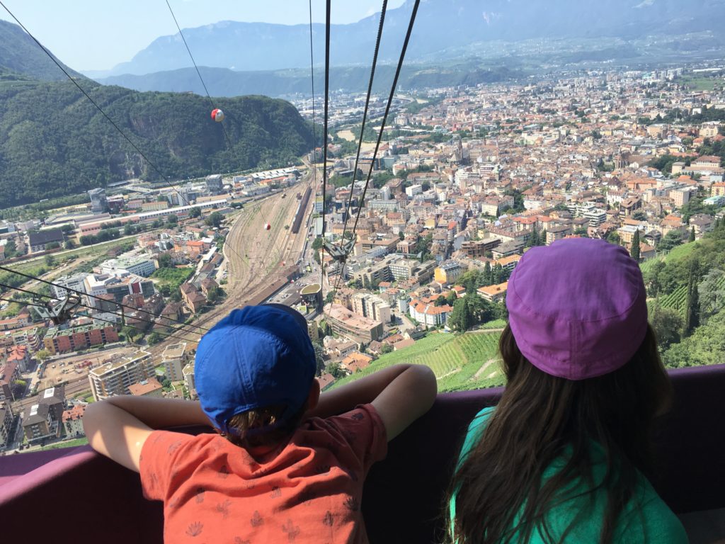 Nous séjournons trois jours à Soprabolzano, un charmant village de montagne situé sur les hauteurs de Bolzano, qui jouit d’un panorama incroyable sur les Dolomites. Sa particularité est que nous pouvons descendre directement dans le centre-ville de Bolzano en… téléphérique, et nous épargner 45mn de voiture ! Nous survolons les fameuses Piramidi di terra puis des collines couvertes de vignes avant de rejoindre le centre médiéval de la capitale du Haut-Adige (ou Sud-Tyrol). Pendant longtemps, Bolzano a appartenu à l’Autriche avant de devenir italienne en 1919. On y retrouve donc l’influence germanique, aussi bien dans l’architecture que dans la culture puisque l’allemand et l’italien sont les deux langues officielles de la région. Bolzano est une étape agréable avec ses jolies maisons couleurs pastel aux balcons fleuris, ses arcades animées et son imposante cathédrale Duomo di Bolzano. Idéal pour savourer une glace italienne et faire le plein de victuailles au marché des producteurs locaux !