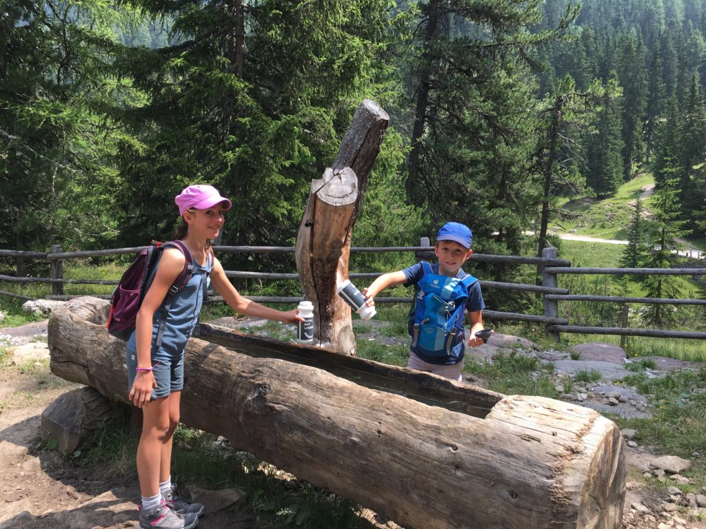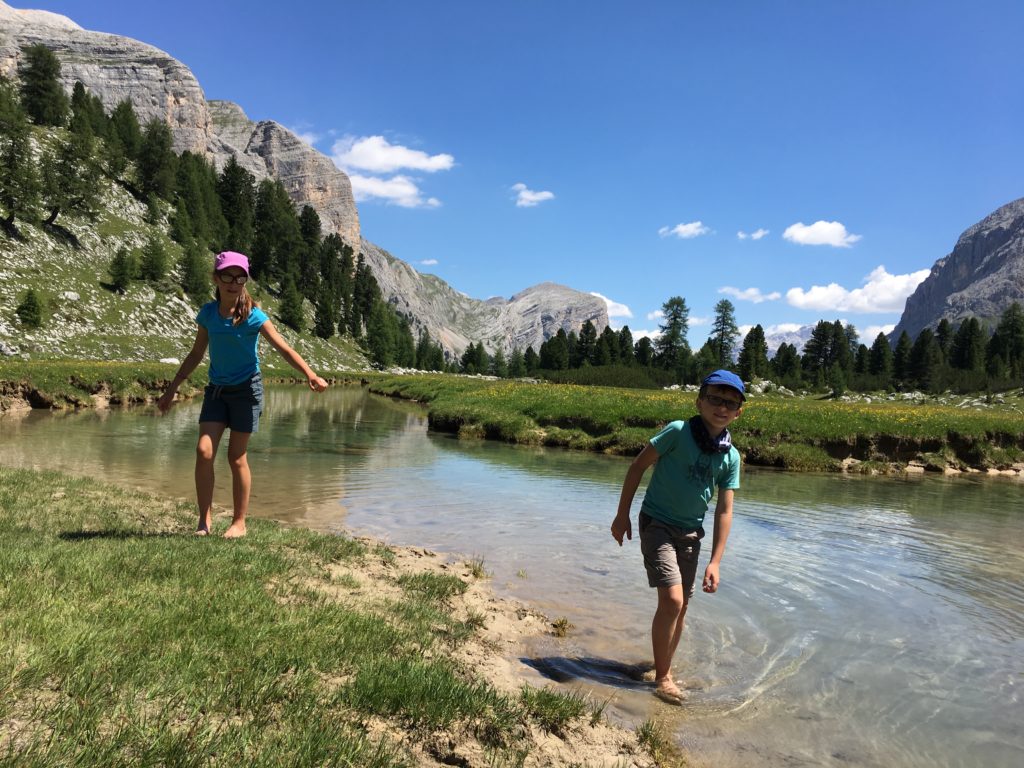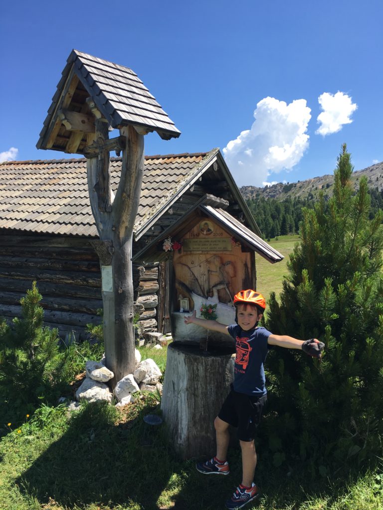 Le massif d’Alta Badia mérite le détour, offrant de beaux panoramas sur plusieurs « 3000 » des Dolomites, dont le Marmolada (3342 m), le Civetta (3218 m) et le Pelom (3168 m). Le vélo de montagne à assistance électrique (e-bike) est un excellent moyen pour rejoindre le sommet de la station. Nous les louons directement auprès de l’hôtel Diamant qui disposent de vélos GIANT flambants neufs, et complétons par la location d’un vélo pour enfant dans un magasin local. De San Cassiano, nous voilà partis à l’assaut du Piz Lorega, culminant à 2003 m. Nous empruntons un réseau de larges pistes forestières et rejoignons le sommet sans difficultés. Plusieurs restaurants et des aires de jeu pour les enfants assurent l’animation estivale. Nous poussons jusqu’au Pralongia (2 157 m) avant de rejoindre la vallée par une agréable descente, toujours sur des pistes et petites routes forestières bien balisées. Après avoir effectué une pause à l’hôtel pour nous restaurer, nous repartons vers le village de La Villa puis de Badia en longeant une rivière tumultueuse.