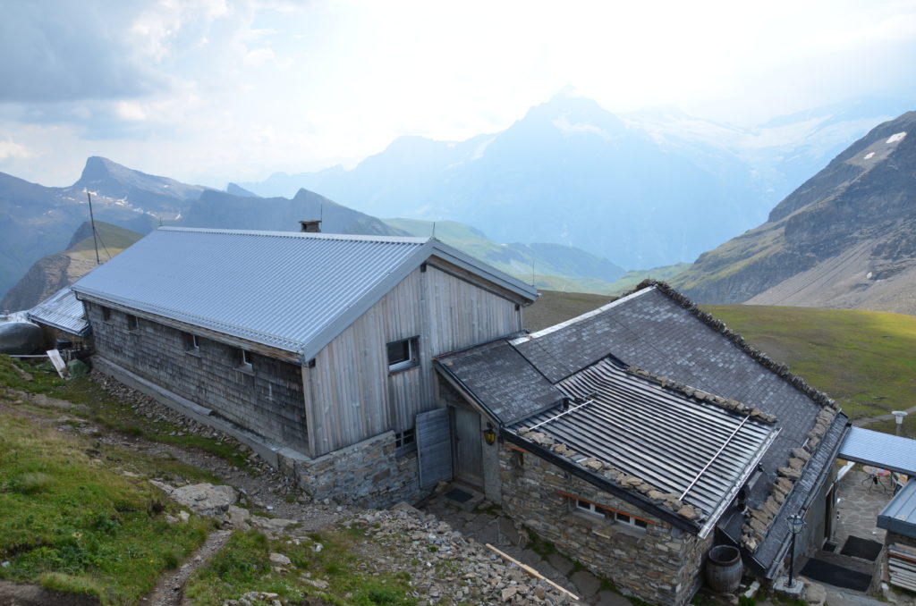 Puis nous attaquons le gros morceau de la journée, l’ascension jusqu’au Faulhorn culminant à 2 680 m d’altitude. Nous rejoignons assez rapidement le petit refuge de Burgener-Hutte situé à mi-chemin. Le sentier monte ensuite en zig-zag pour finalement atteindre l’hôtel historique du Faulhorn. D’ici, une vue à 360° se découvre mêlant l’Eiger, la Jungfrau et tous les sommets voisins vers le Sud, Interlaken et le lac de Brienz vers le Nord. En ce jour de fête nationale, un apéro s’impose sur la terrasse pour contempler cette vue incroyable !