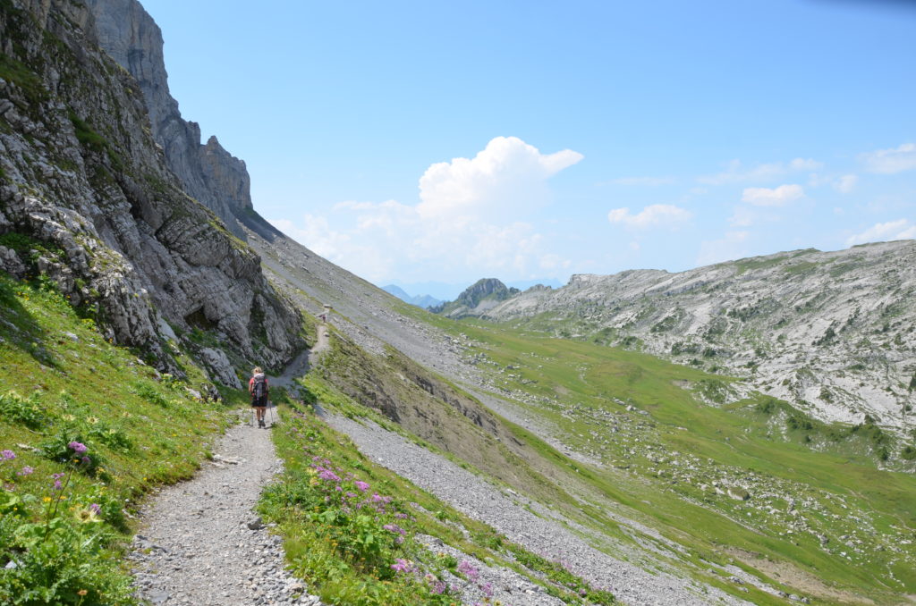Puis nous continuons à travers la haute vallée du Sägistal, très sauvage, qui se termine par le passage du col du Güw. Nous contournons le Loucherhorn pour déboucher sur le long plateau de Schynige-Platte. La gare se dessine au loin et il nous faudra presser le pas pour arriver juste avant les premières gouttes de pluie.
