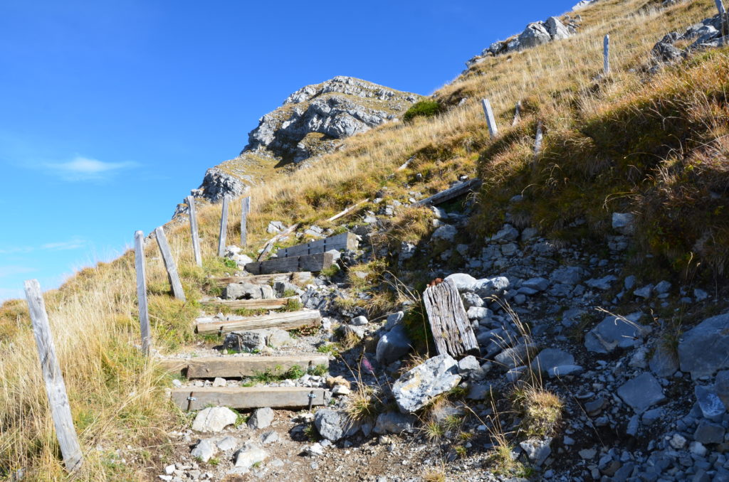 – L’Ochse (2 188 m), auquel on accède depuis l’hôtel de Schwäfelbergwald et sa remontée mécanique aujourd’hui abandonnés. C’est probablement notre préféré, avec son sommet coiffé par un poteau vachement drôle ! Les derniers mètres de l’ascension sont plutôt exposés, mais la vue y est fantastique.