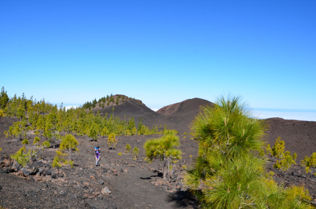 Jour 3 | El Teide : nous décidons de retourner une seconde fois dans le Parc national du Teide pour profiter de ce paysage lunaire exceptionnel. Nous prenons le départ de la rando de Samara (itinéraire no13 – 2 h 30), une belle boucle qui débute au milieu d’un bosquet clairsemé de sapins verts vifs. Le chemin longe une spectaculaire coulée de lave rouge ponctuée de rochers aux couleurs étonnantes. Malgré l’hostilité des lieux, quelques pousses végétales parviennent à jaillir de la roche volcanique.