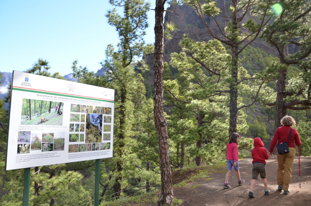 Jour 7 | La Palma : nous partons découvrir le centre de l’île, conservée au sein du Parque Nacional de la Caldera de Taburiente. Cette zone protégée abrite un cirque impressionnant de plus de 8 kilomètres de diamètre en forme de chaudière (caldeira), ponctué de pics de roche volcanique. Des ravins abrupts sectionnent les flancs des volcans, couverts de pins canariens centenaires. Nous effectuons la boucle de la Cumbrecita, courte randonnée de 3 km qui permet d’apprécier la grandeur du site.