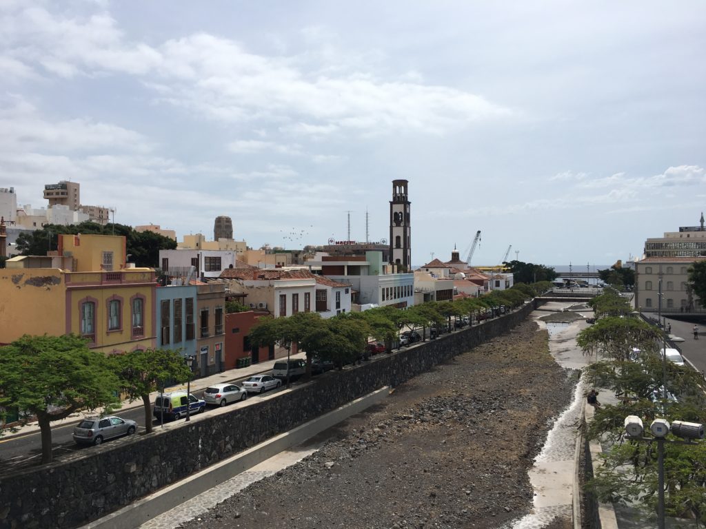 Après avoir avalé quelques tapas à la terrasse du Bar Benidorm sur la Plaza del Dr. Olivera, nous quittons La Laguna par la route panoramique TF12 qui traverse le Parque rural d’Anaga. Nous constatons que cette région montagneuse à l’extrême nord de l’île offre d’incroyables possibilités de randonnée au cœur de montagnes et de ravins luxuriants. Nous le retenons pour un prochain voyage, car nous avons plutôt prévu de passer l’après-midi sur la Playa de las Teresitas, l’une des seules plages de sable blanc de l’île, qui a abondamment été importé… du Sahara ! De retour à Santa Cruz, nous dinons au restaurant El Lagar de Noria qui offre une agréable terrasse sur la Calle Antonio Domínguez Alfonso, fermée à la circulation.