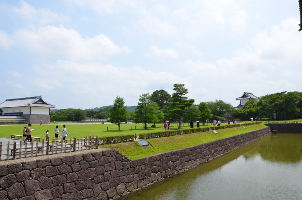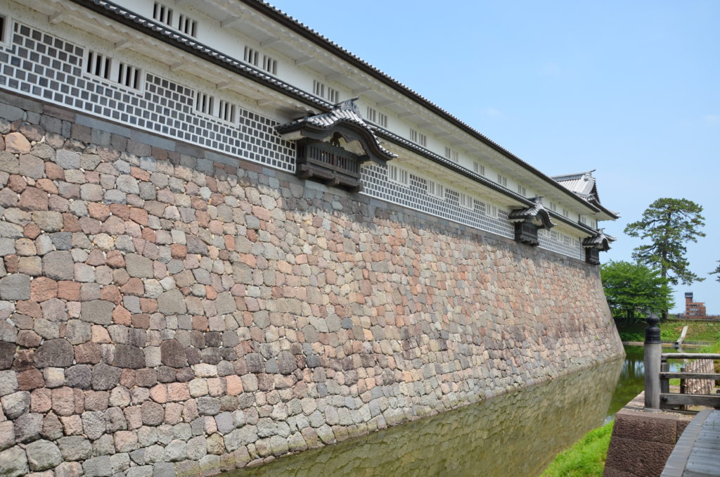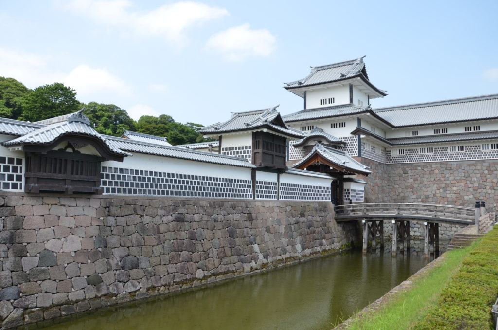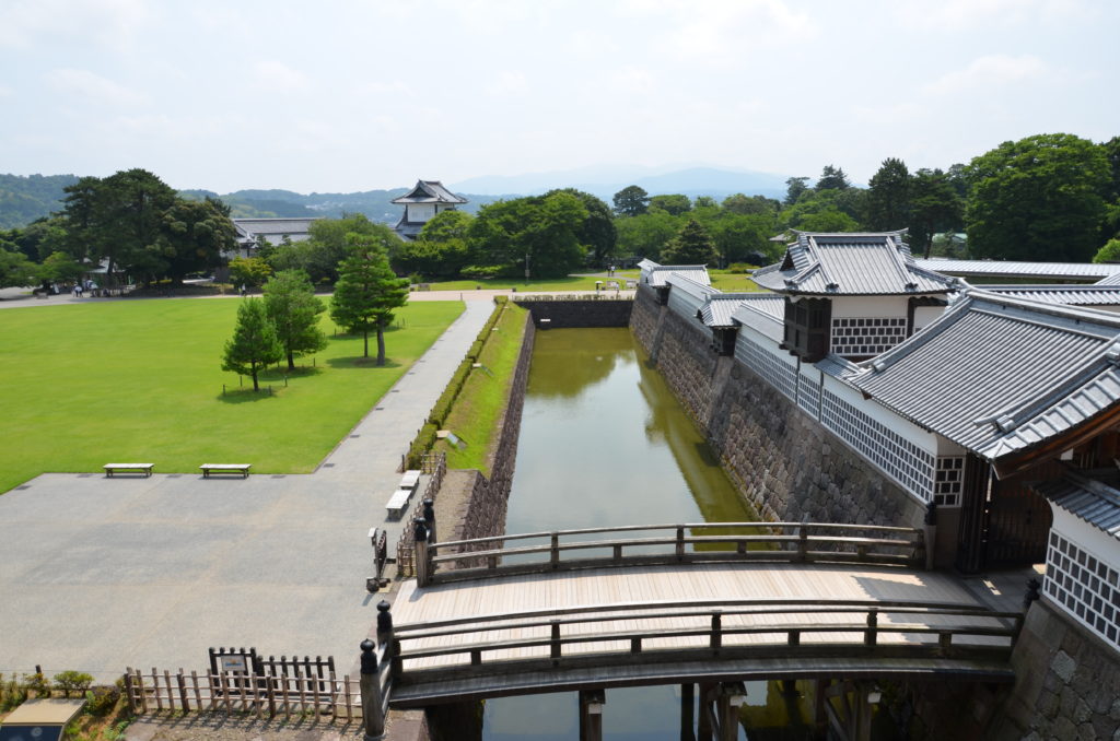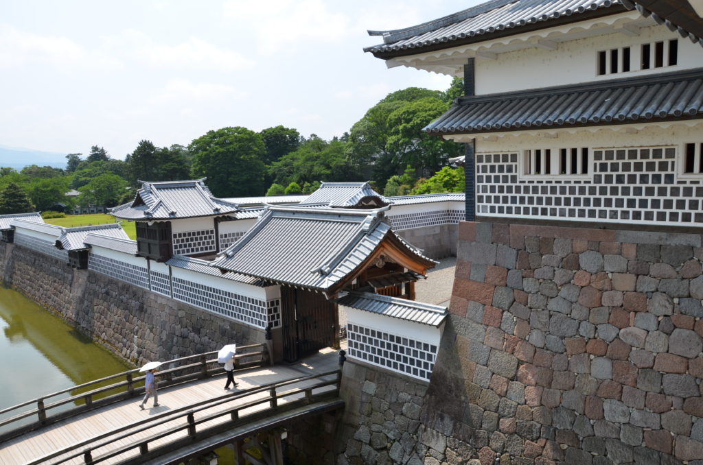 Jour 7 | Kanazawa : nous débutons notre journée par la visite du château de Kanazawa, un complexe fortifié qui a été construit dans les années 1580. La visite se concentre sur le parc, les fortifications, les tourelles et les portes partiellement reconstruites. Il s’agit plus d’une itération parmi de multiples reconstructions suite aux séismes et incendies successifs qui l’ont frappé au cours de son histoire (1881 pour le dernier en date). Le donjon n’a, d’ailleurs, toujours pas été rebâti. Le bâtiment central, récemment rénové, présente toutefois une charpente remarquable.