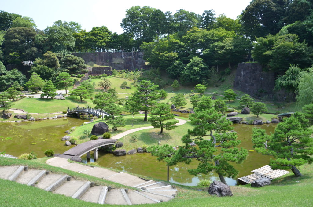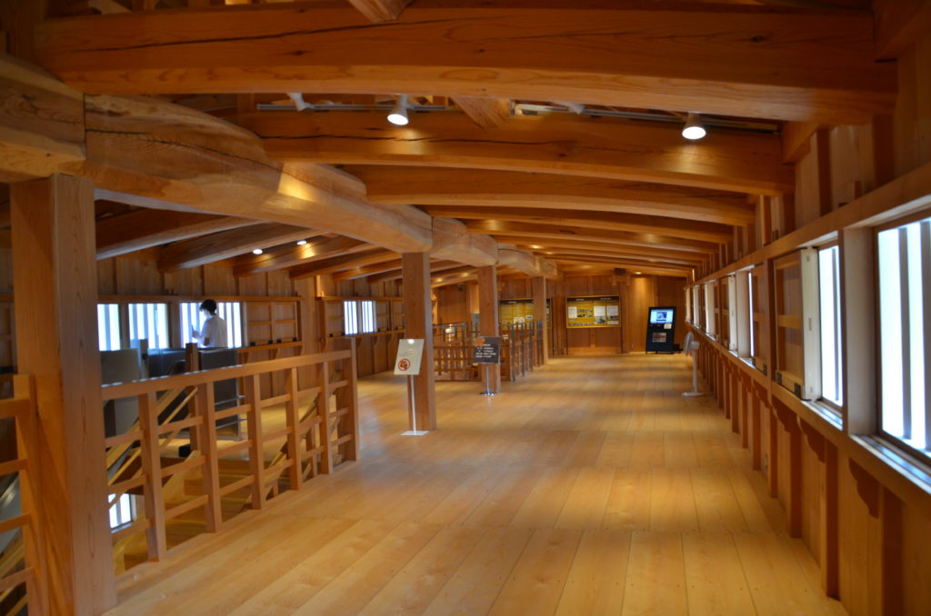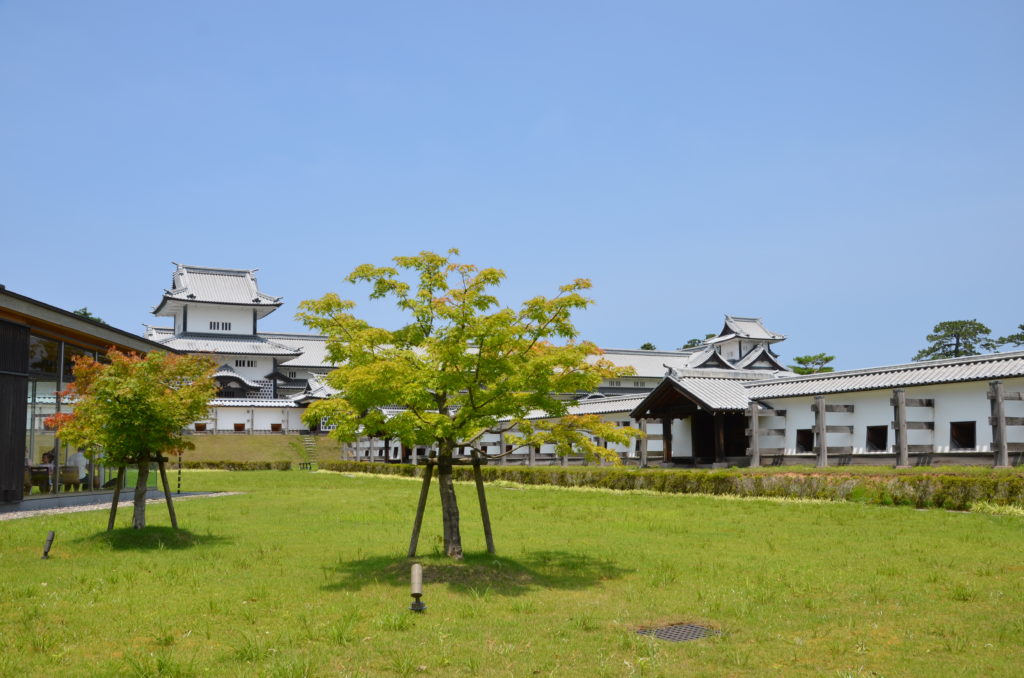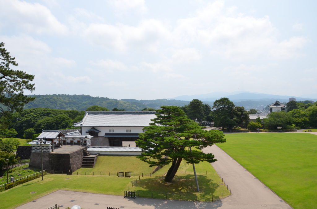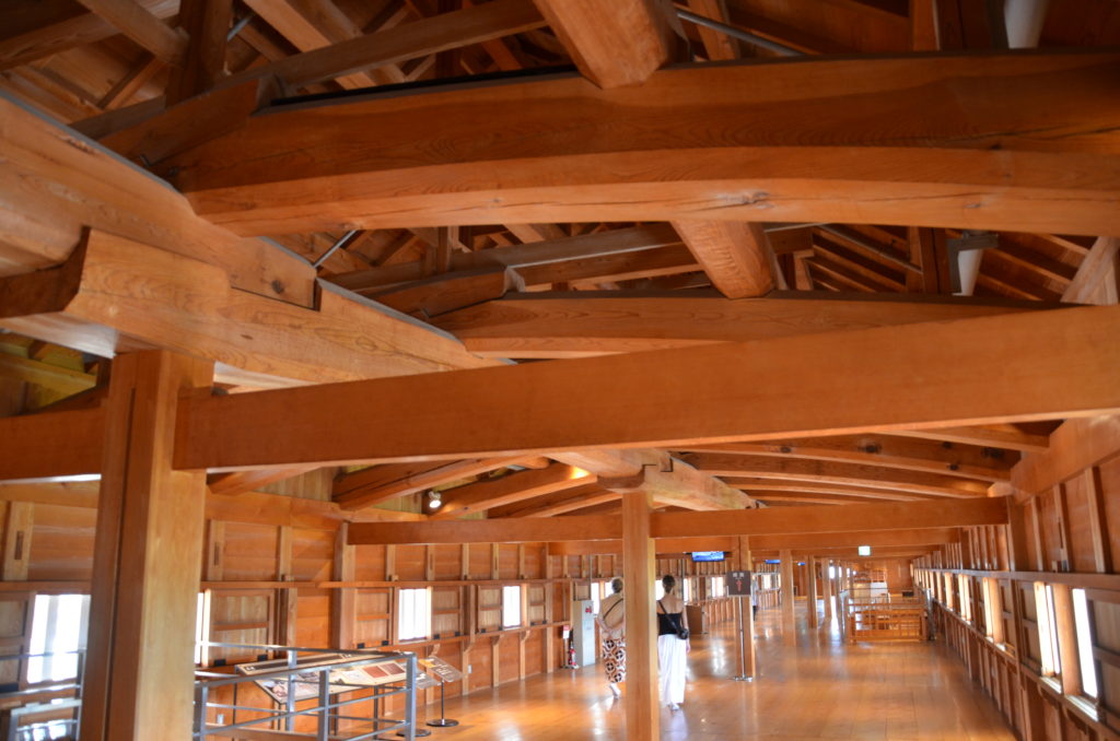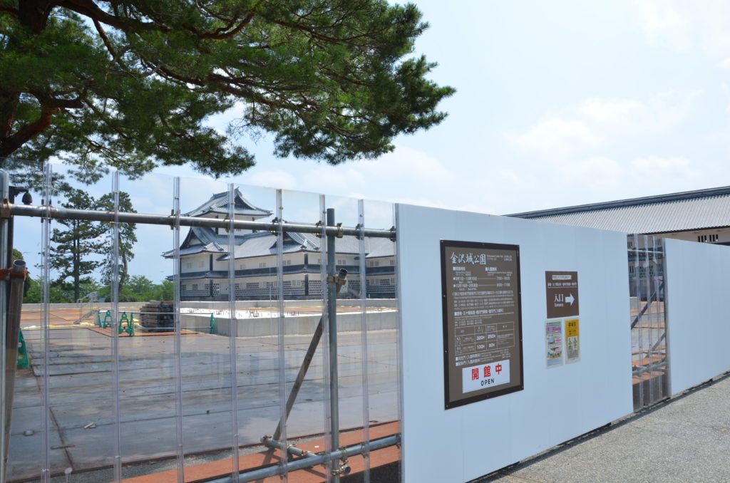 Jour 7 | Kanazawa : nous débutons notre journée par la visite du château de Kanazawa, un complexe fortifié qui a été construit dans les années 1580. La visite se concentre sur le parc, les fortifications, les tourelles et les portes partiellement reconstruites. Il s’agit plus d’une itération parmi de multiples reconstructions suite aux séismes et incendies successifs qui l’ont frappé au cours de son histoire (1881 pour le dernier en date). Le donjon n’a, d’ailleurs, toujours pas été rebâti. Le bâtiment central, récemment rénové, présente toutefois une charpente remarquable.