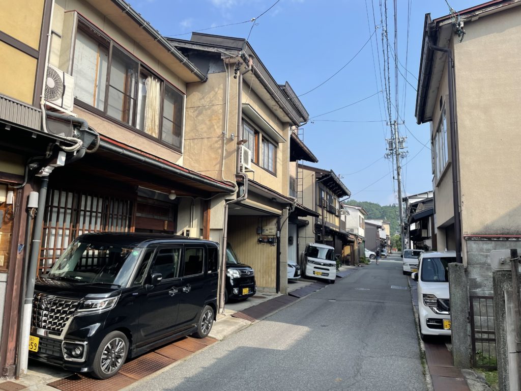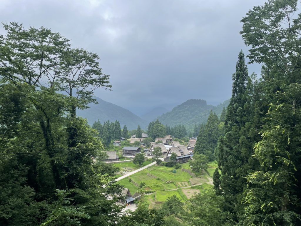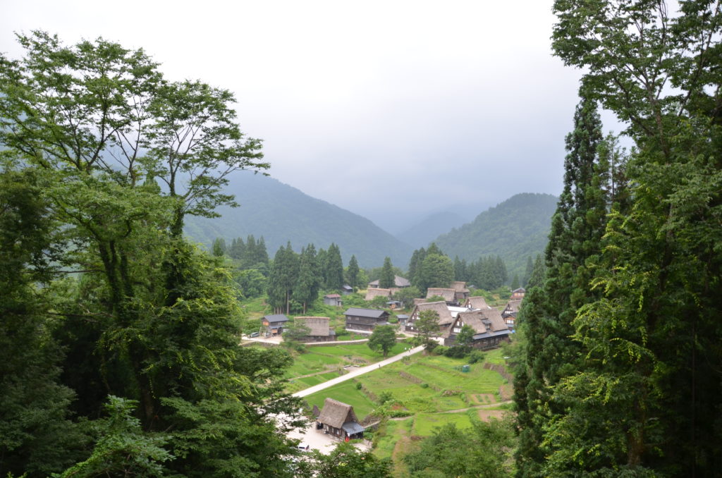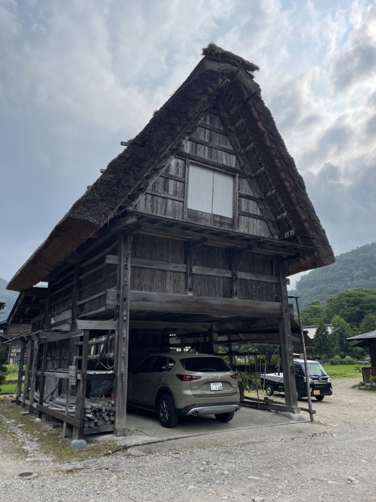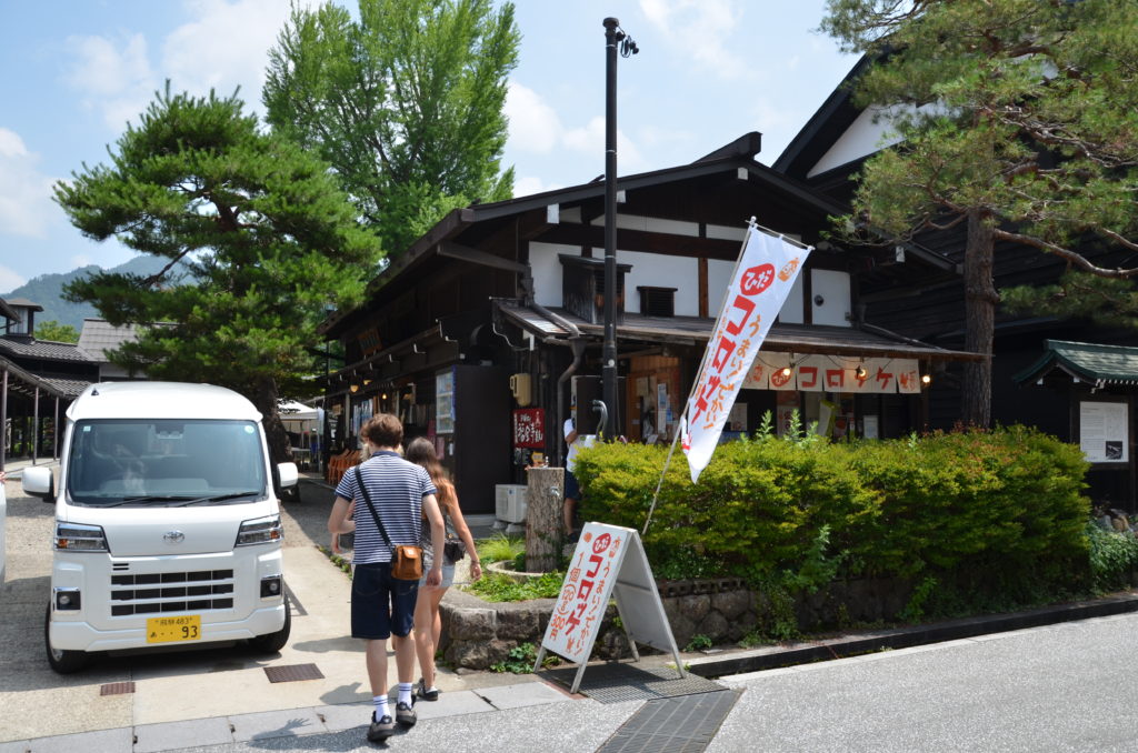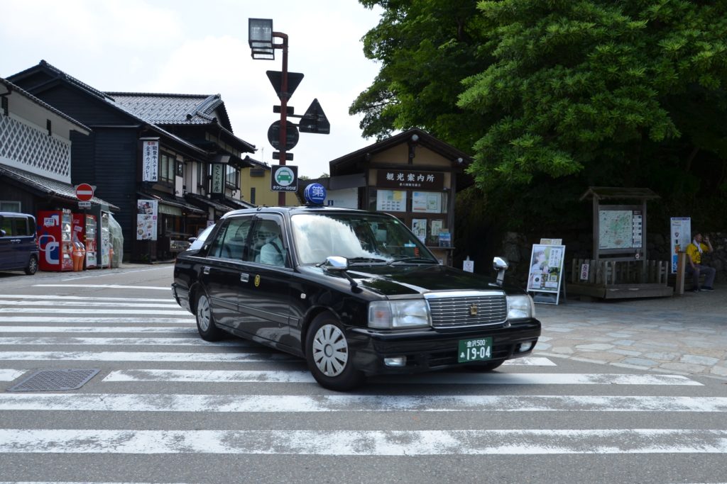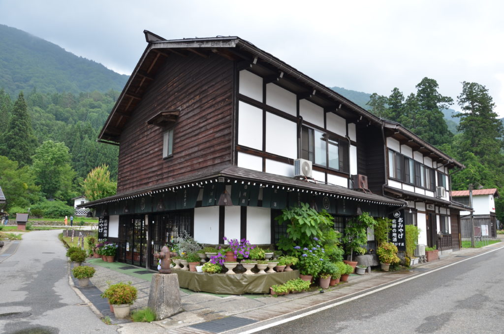 Jour 8 | Kanazawa > Hida : nous récupérons notre véhicule de location chez Toyota Rent a car, un van compact Toyota Noha, véhicule cubique mais très logeable, et prenons la direction des Alpes japonaises. Les premiers kilomètres sont un peu déstabilisants. Il faut composer avec le poste de conduite à droite, la circulation inversée, la signalisation en japonais… Heureusement que le GPS nous accompagne en français ! Nous évitons l’autoroute et empruntons plutôt des routes nationales moins fréquentées. Nous faisons une première étape à Ainokura, un petit village traditionnel relativement tranquille. Nous en profitons pour nous régaler de tempuras chez Matuya, le seul restaurant/boutique du village avant de flâner dans ses ruelles désertes, entourées de montagnes à la végétation dense.