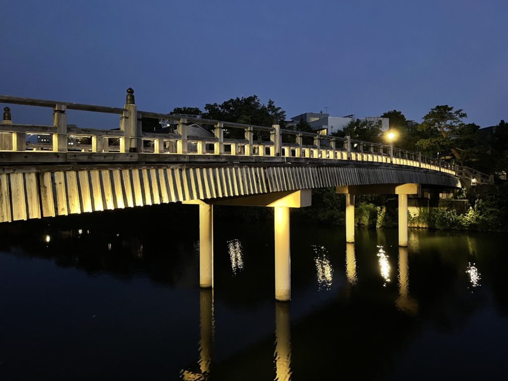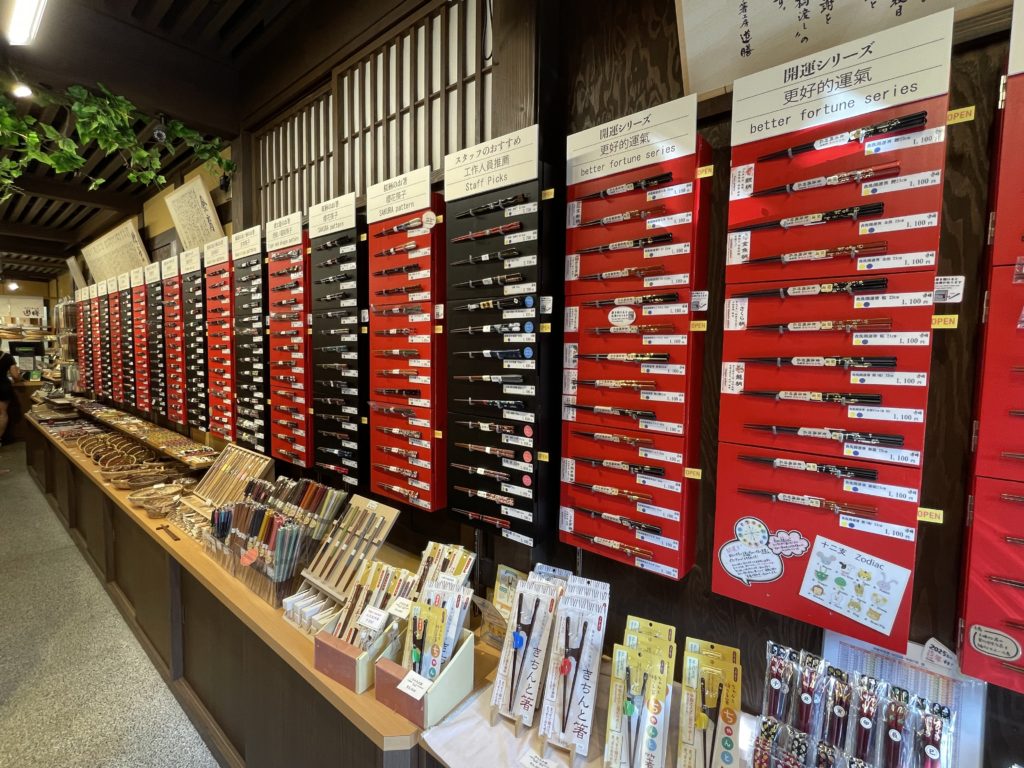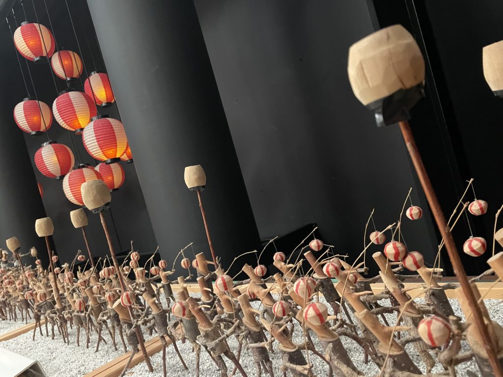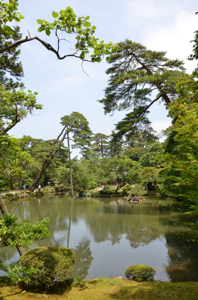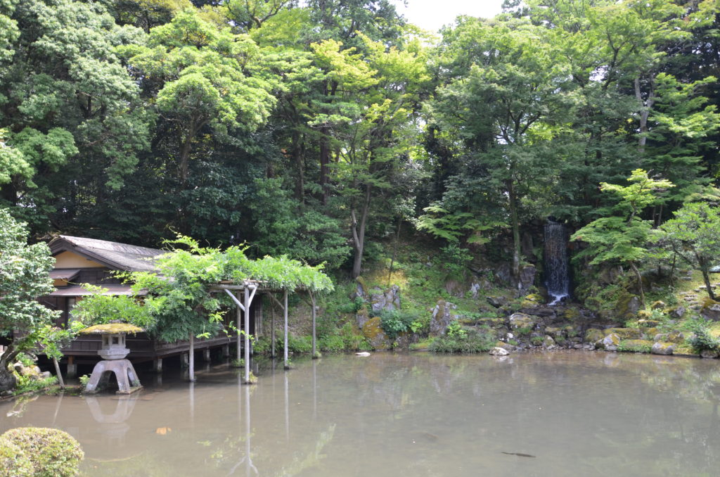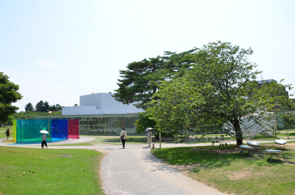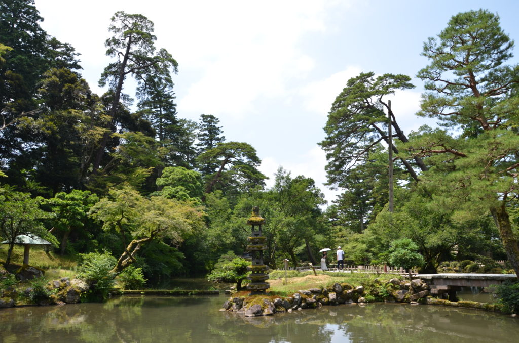 Puis nous poursuivons par le Jardin Kenroku-en, situé derrière le château. Nous prenons une pause au Miyoshian Suitei, un pavillon de thé traditionnel qui surplombe les eaux sombres d’un étang. Nous poursuivons dans les allées verdoyantes du jardin mais la chaleur est accablante. Nous trouvons alors refuge dans le quartier des musées pour nous rafraîchir dans ses halls climatisés. C’est dans celui du Musée préfectoral d’art d’Ishikawa que nous succombons devant la vitrine de la pâtisserie Musée de H. On ne résiste pas à refaire une pause sucrée devant la finesse de ses pâtisseries. Reboostés et rafraîchis, nous nous rendons au Musée d’Art contemporain en passant par le sanctuaire shinto IshiuraShrine.