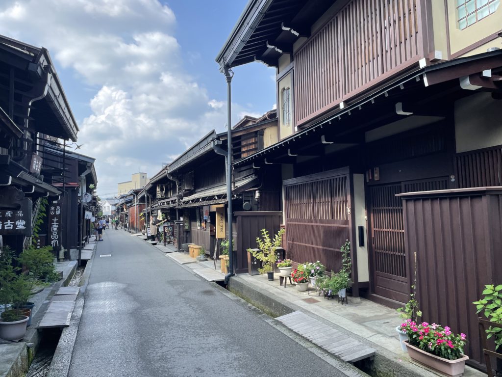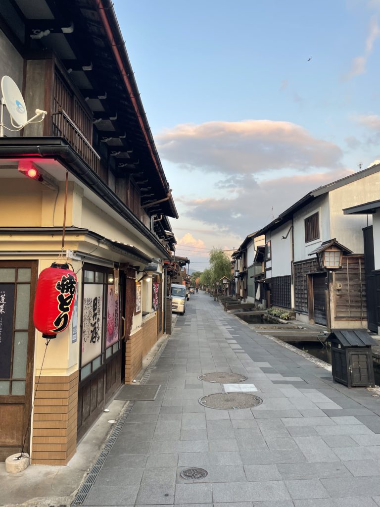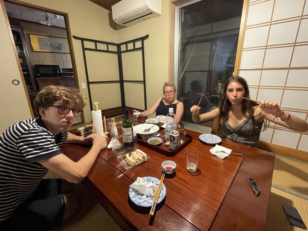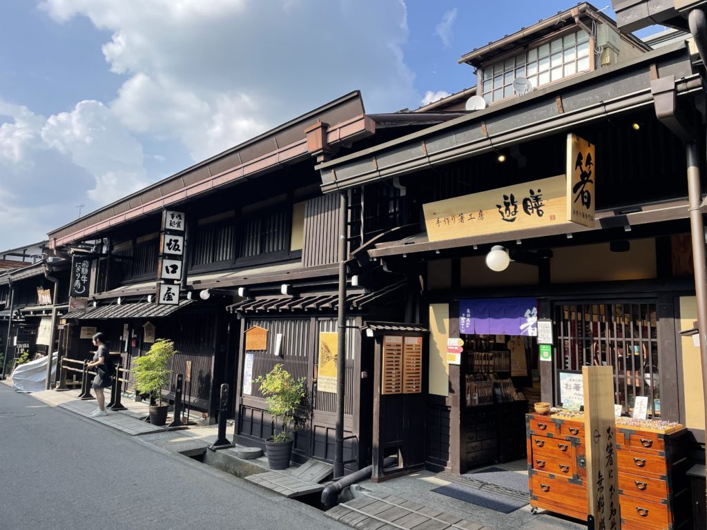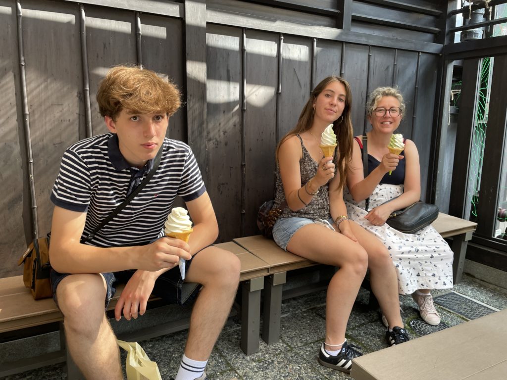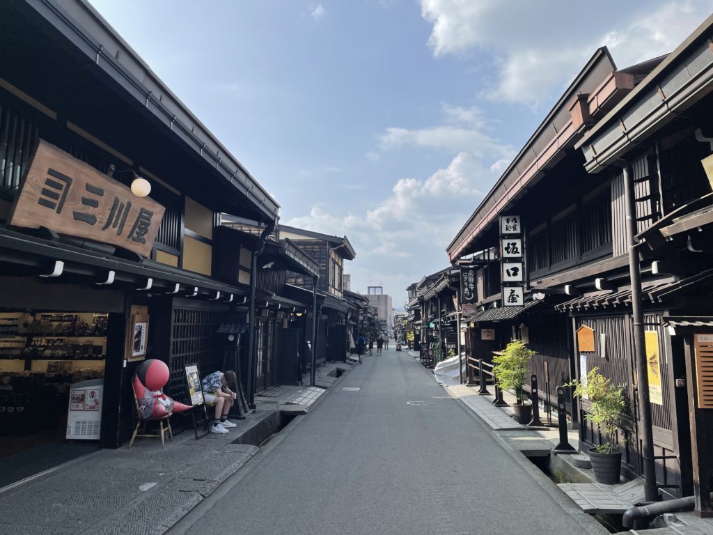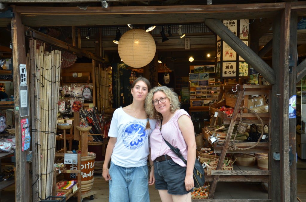 En début d’après-midi, nous nous rendons à Takamaya, une ville voisine d’Hida, destination touristique populaire des Alpes japonaises. Changements d’ambiance, les rues sont plus animées, occupées par les nombreux touristes de passage. Nous nous perdons dans les multiples boutiques de souvenirs et d’art de la table japonais et ne résistons pas à l’achat de quelques baguettes, porte-baguettes et autres bols à riz. Il n’empêche que ces rues aux maisons anciennes ont beaucoup de charme, et qu’il est agréable d’y flâner ou d’y déguster une glace au matcha. Sur la route du retour, nous décidons de nous arrêter dans un supermarché local pour y effectuer quelques courses et diner à la maison. Difficile d’identifier la nature des produits dans les rayons, tous les articles étant suremballés. On se rabat sur les plats préparés, plus facilement reconnaissables et appétissants, pour un dîner assis sur les tatamis de notre salle à manger !