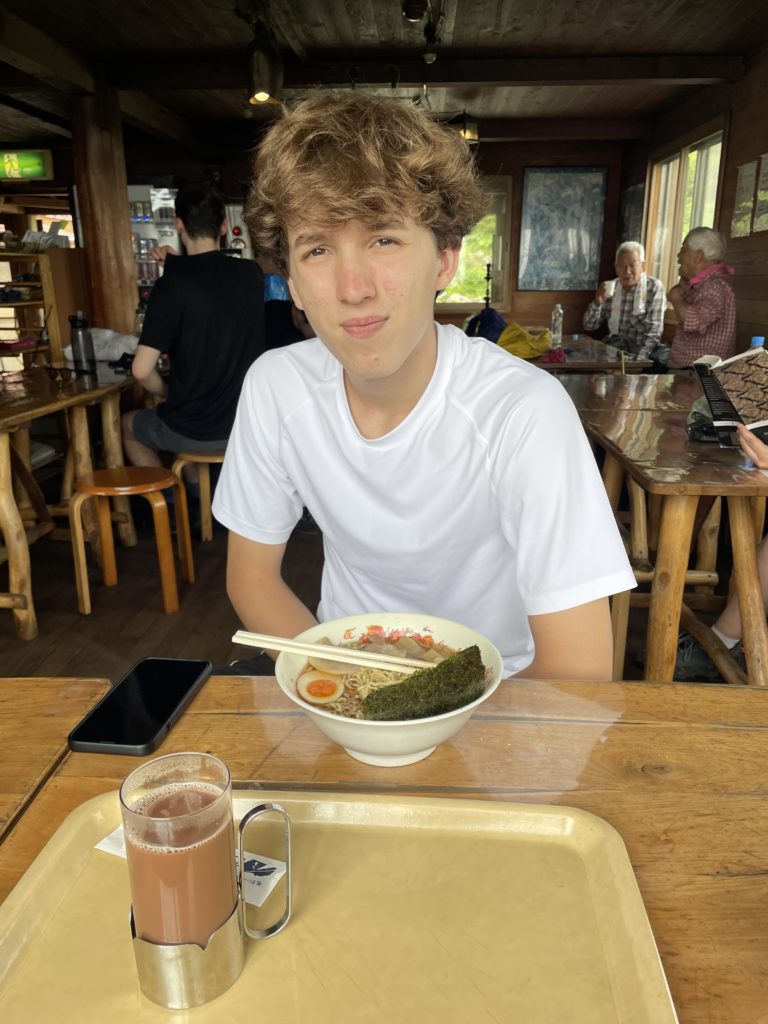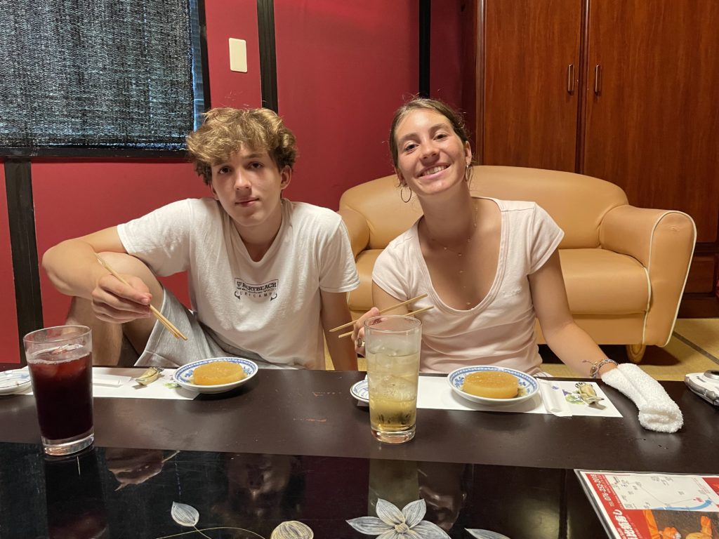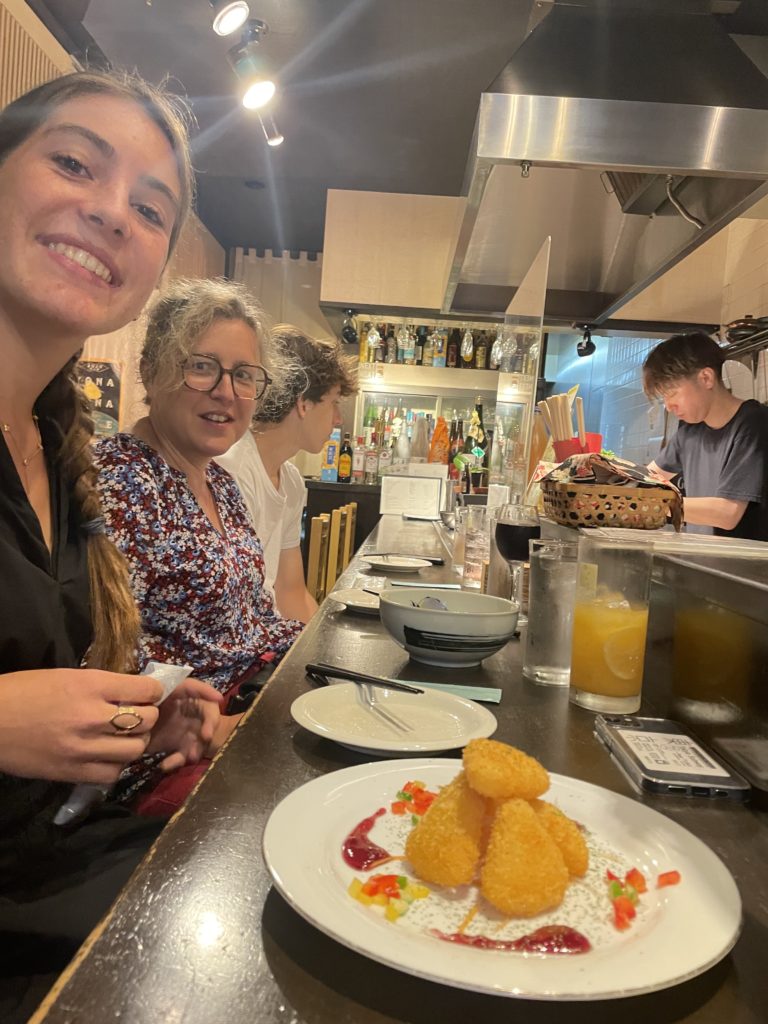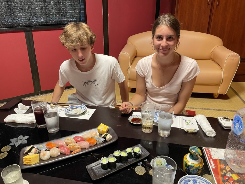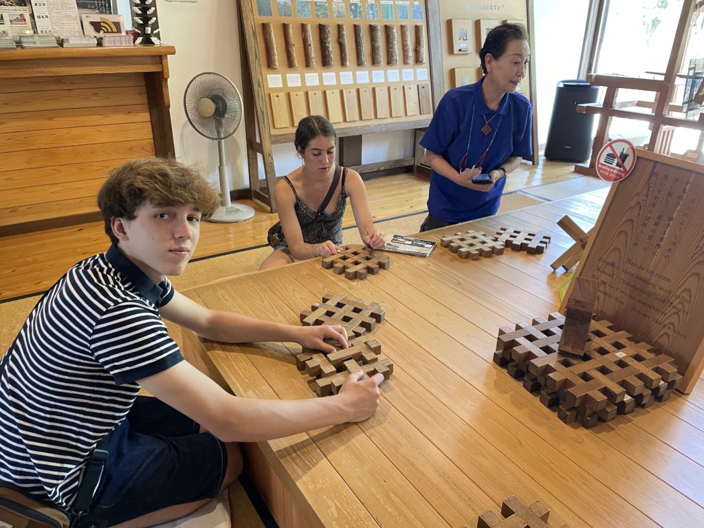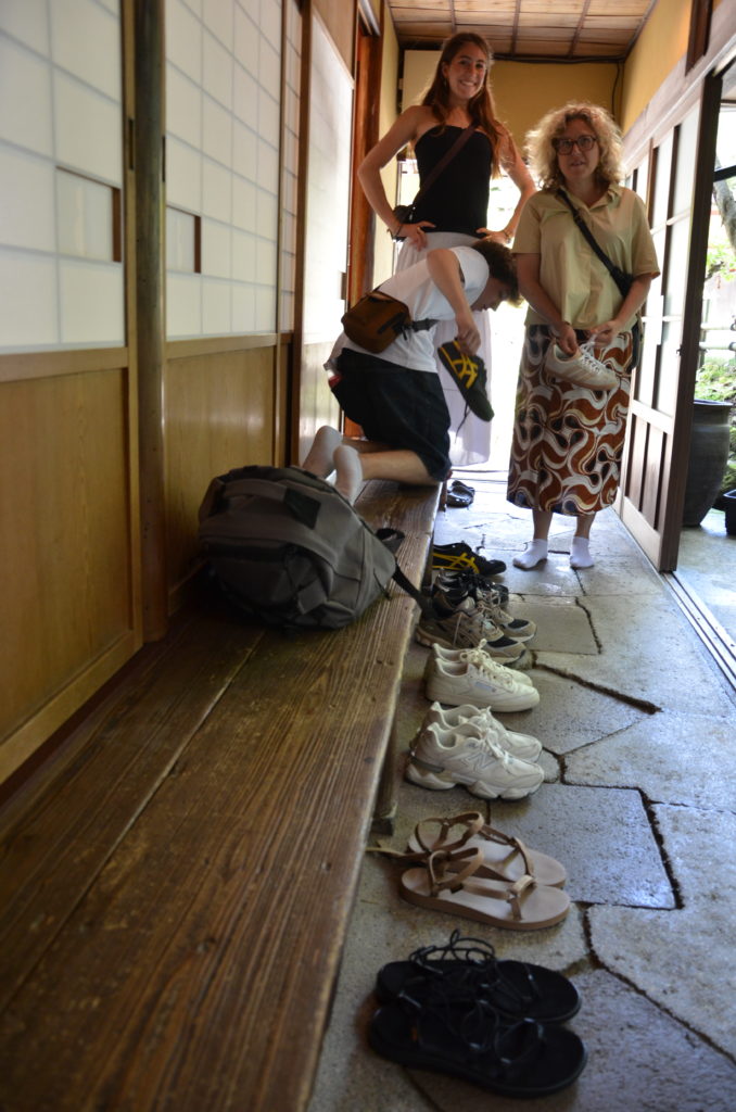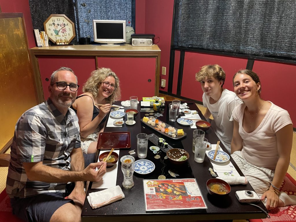 En début d’après-midi, nous nous rendons à Takamaya, une ville voisine d’Hida, destination touristique populaire des Alpes japonaises. Changements d’ambiance, les rues sont plus animées, occupées par les nombreux touristes de passage. Nous nous perdons dans les multiples boutiques de souvenirs et d’art de la table japonais et ne résistons pas à l’achat de quelques baguettes, porte-baguettes et autres bols à riz. Il n’empêche que ces rues aux maisons anciennes ont beaucoup de charme, et qu’il est agréable d’y flâner ou d’y déguster une glace au matcha. Sur la route du retour, nous décidons de nous arrêter dans un supermarché local pour y effectuer quelques courses et diner à la maison. Difficile d’identifier la nature des produits dans les rayons, tous les articles étant suremballés. On se rabat sur les plats préparés, plus facilement reconnaissables et appétissants, pour un dîner assis sur les tatamis de notre salle à manger !