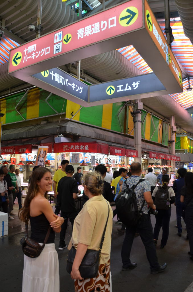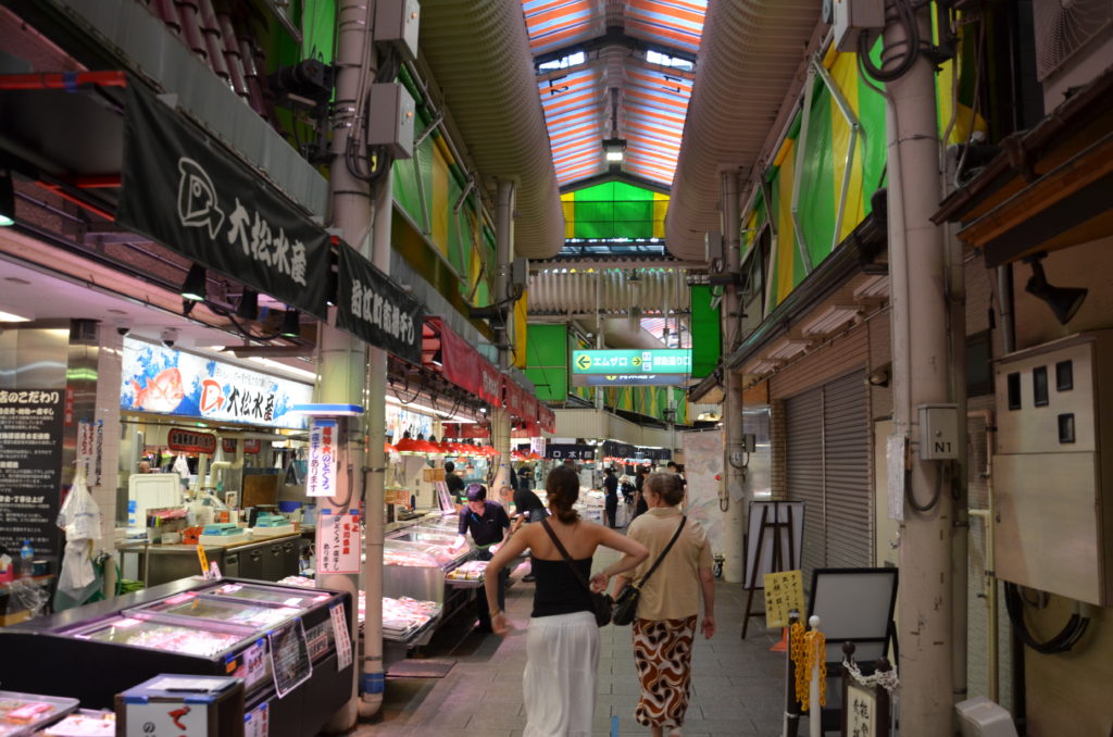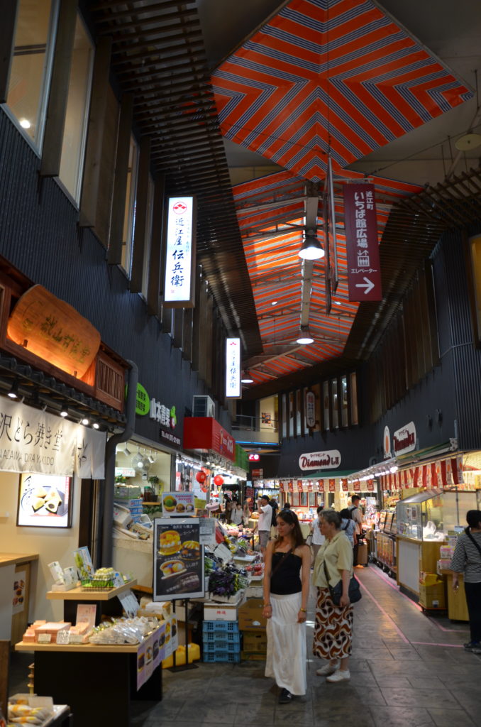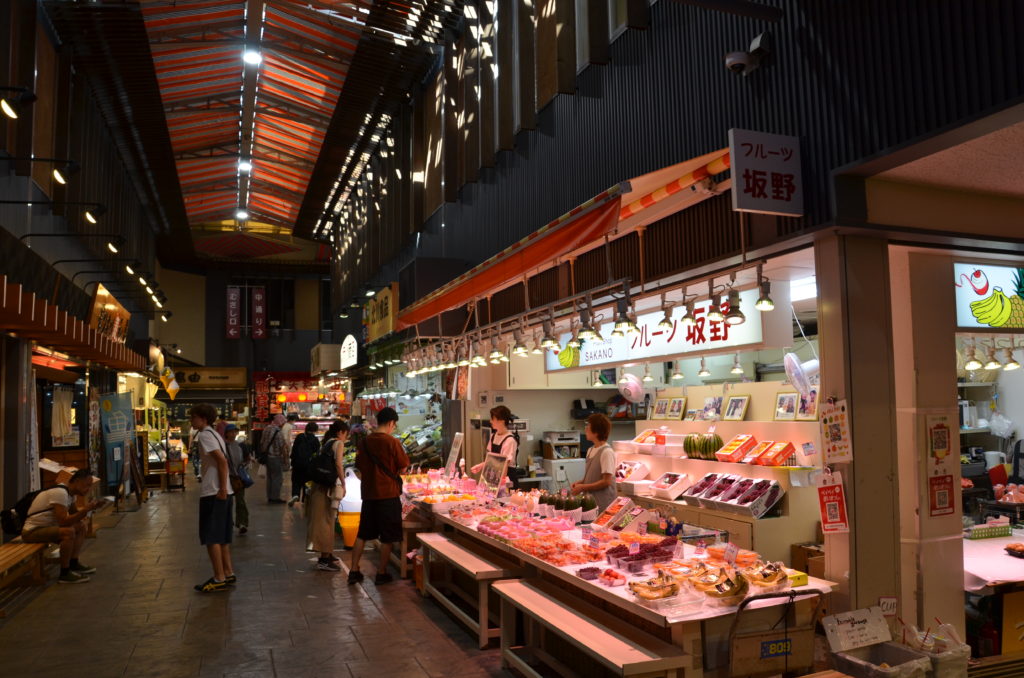 Face à la chaleur étouffante, nous décidons de sauter dans un bus pour effectuer les quelques arrêts qui nous séparent du centre-ville. Nous nous rendons au marché en quête d’un déjeuner tardif et nous nous attablons au Kanazawa Curry Laboratory, une succulente petite cantine de curry japonais. Nous effectuons quelques emplettes au marché et dans le centre commercial voisin avant de prendre une pause à l’hôtel. Puis nous décidons de régler quelques détails logistiques. Nous passons chez le loueur de voitures pour nous assurer de la validité de mon permis de conduire international car certains sites indiquaient que ce dernier devait être traduit en japonais. Une fois cette vérification faite, nous nous rendons à la gare pour acheter nos billets de train pour Kyoto que nous rejoindrons dans quelques jours. Nous prenons aussi quelques infos à l’office de tourisme et passons une tête dans l’immense magasin de plein-air de la marque japonaise Montbell. En chemin vers un restaurant, nos nous arrêtons dans un minuscule bar, le Budokan, tenu par une sympathique barmaid, où nous discutons au comptoir avec des japonais en voyage d’affaires, curieux de rencontrer deux visiteurs canadiens. Le restaurant que nous avions repéré affiche complet, nous décidons alors de faire quelques courses au FamilyMart, ces conbinis ouverts 24/7, et nous poser dans l’un des lobbys de l’hôtel.