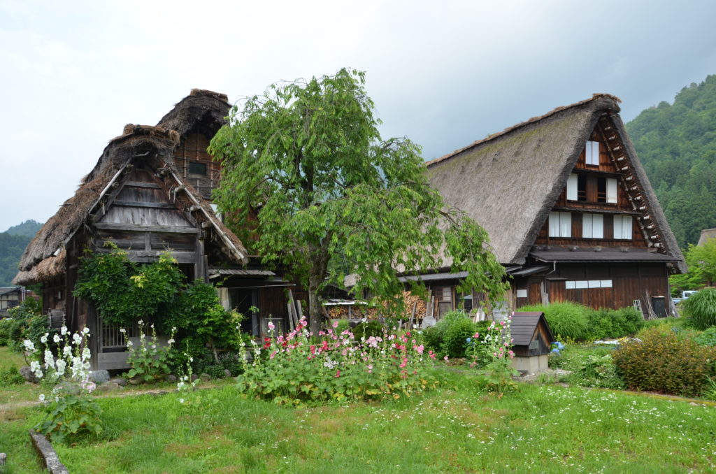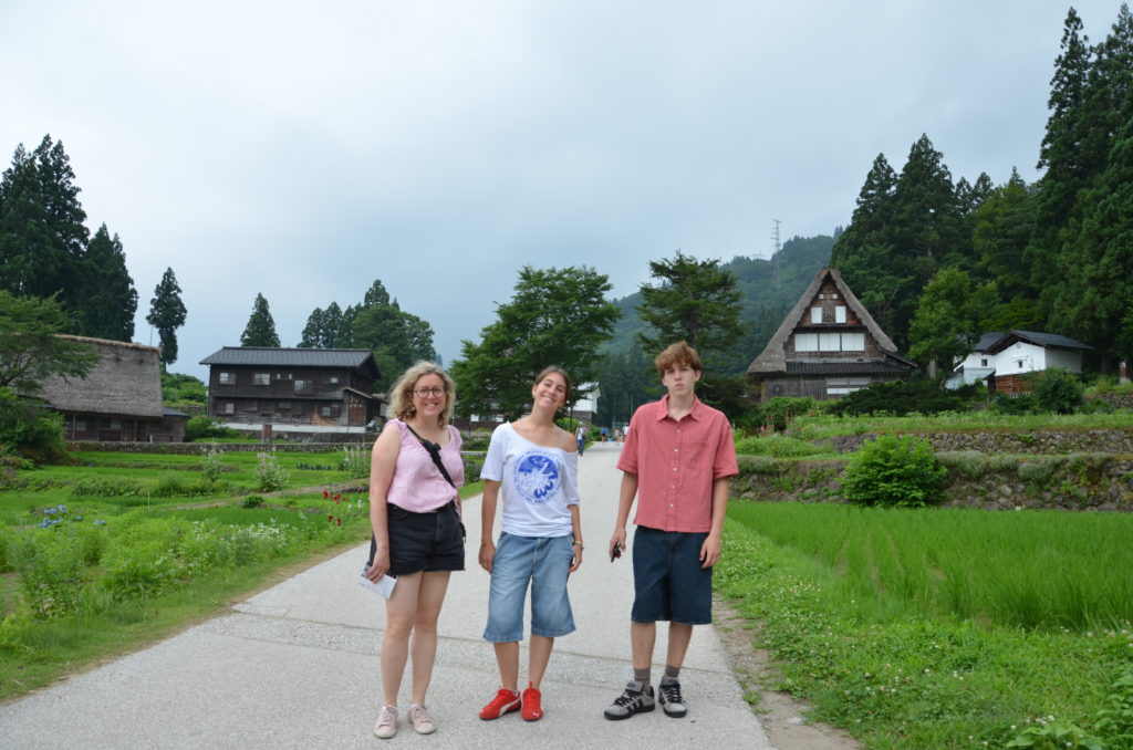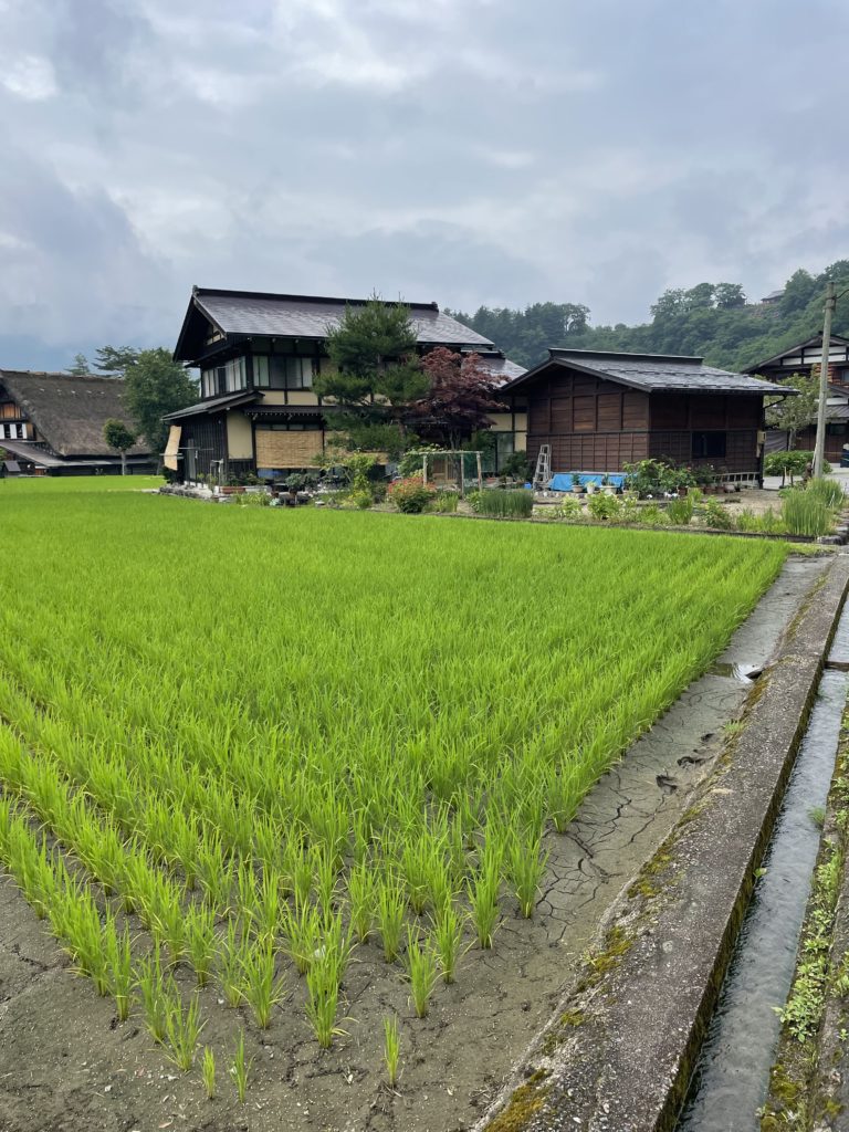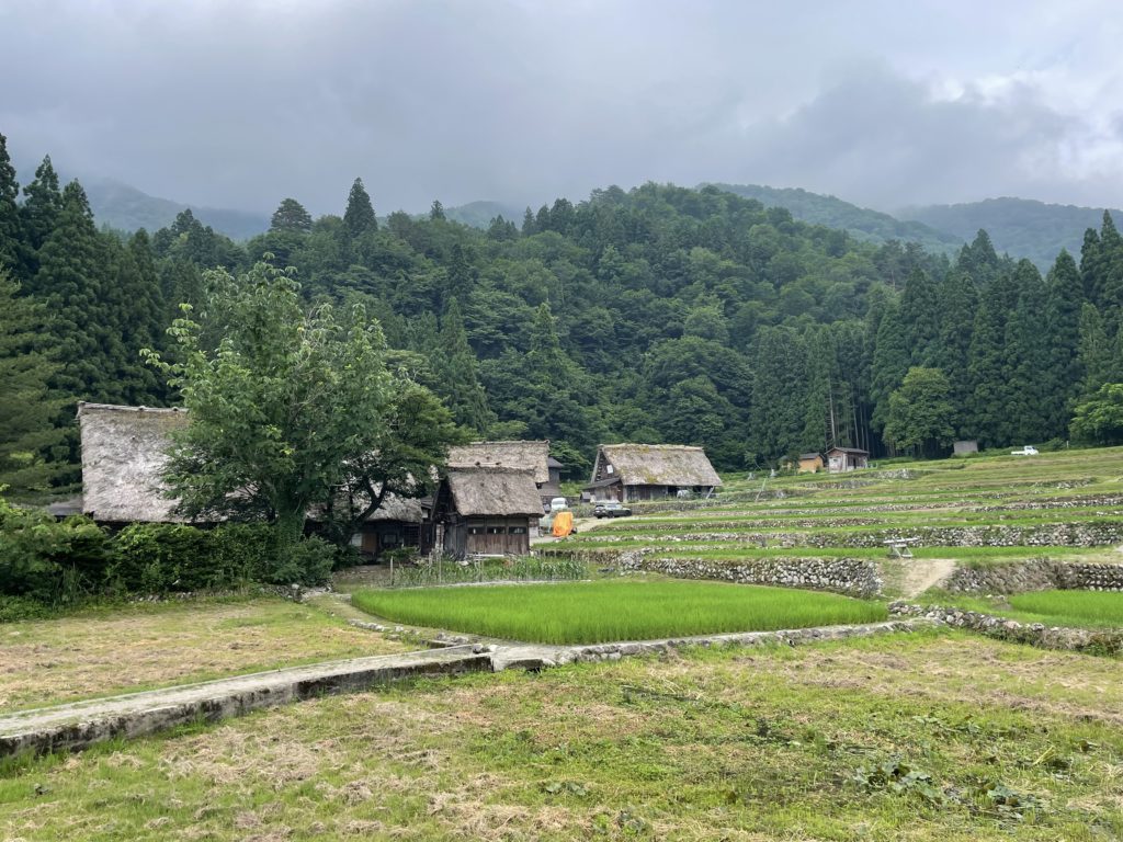Changement d’ambiance pour notre seconde étape à Shirakawa-gō. Il y a foule dans ce village aux allures de carte postale. Après avoir stationné notre automobile sur l’un des parkings en périphérie du village, nous dégustons une succulente glace au matcha chez Purin-ni-ie avant de vadrouiller parmi les maisons traditionnelles posées au milieu de rizières verdoyantes.