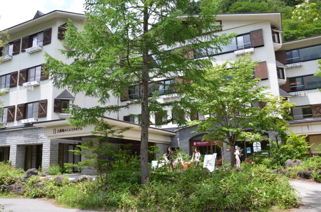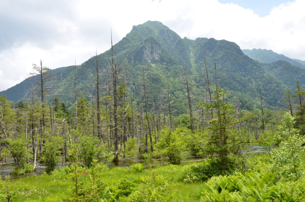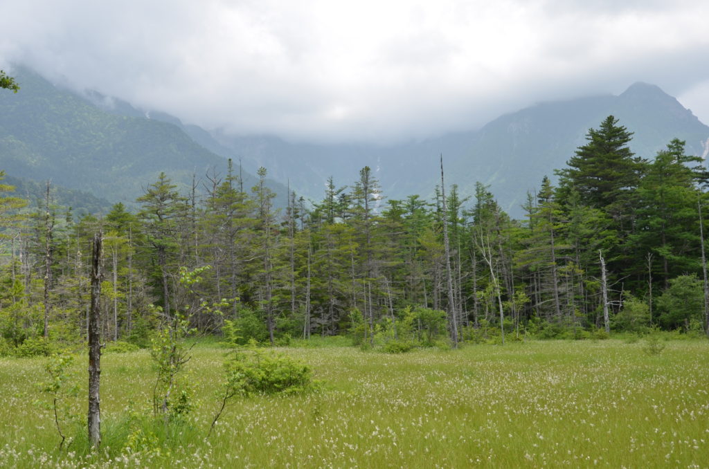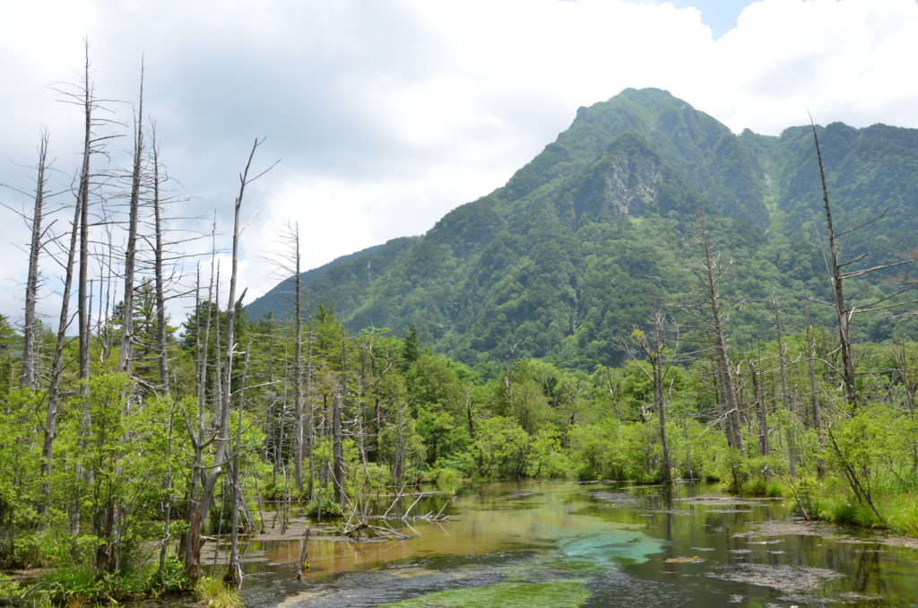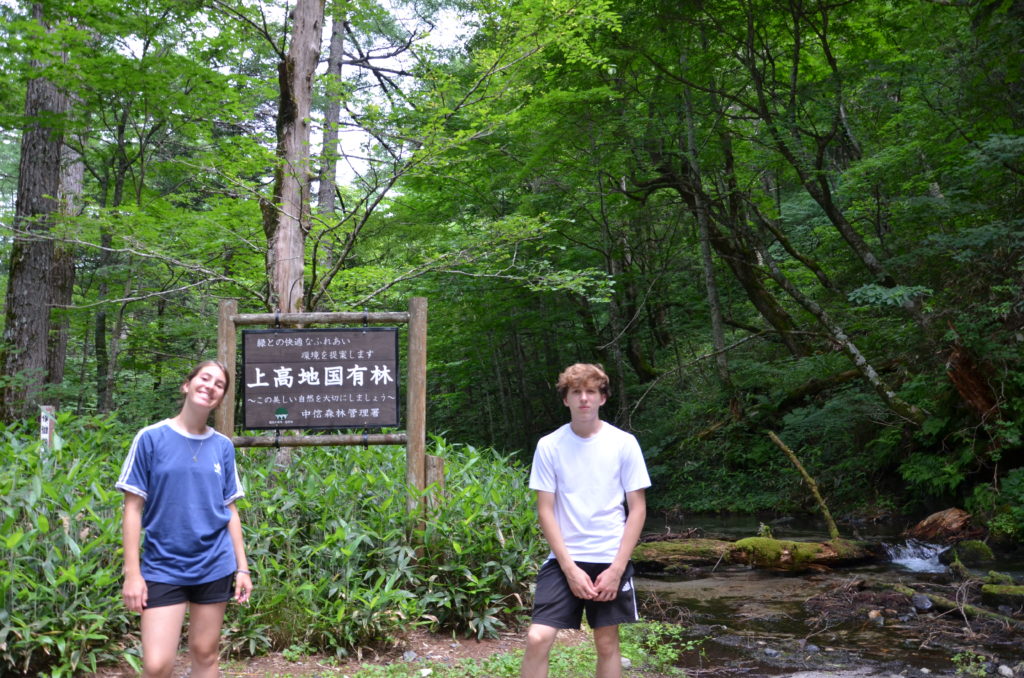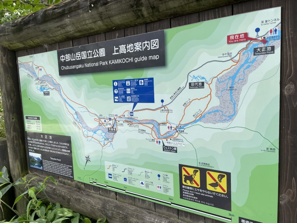 La partie en amont est un peu plus sauvage. Un sentier chemine au milieu d’une zone humide créé par les méandres de la rivière cristalline Azusa. Régulièrement, des Bear Bell émaillent le parcours mais nous supposons qu’elles sont plus installées pour amuser les touristes que pour effrayer les ours. Malgré la fréquentation touristique, nous rencontrons une colonie de petits singes, finalement peut préoccupés par notre présence. Nous terminons notre tour en traversant le camping du site puis atteignons le pont Kappa-bashi, point central qui offre une vue dégagée sur les montagnes environnantes. Nous regagnons le terminal de bus, dont la dimension doit être à la hauteur de la surfréquentation estivale. Avec cette chaleur, nous terminons la journée à l’onsen Hirayu no Mori avant de rentrer à Hida.