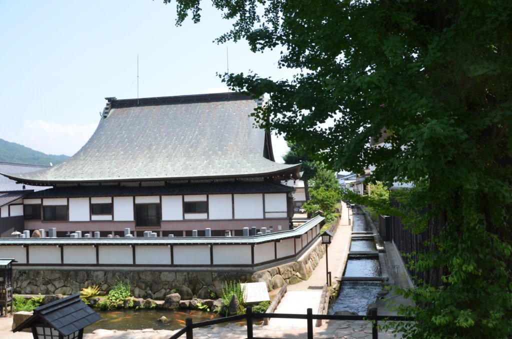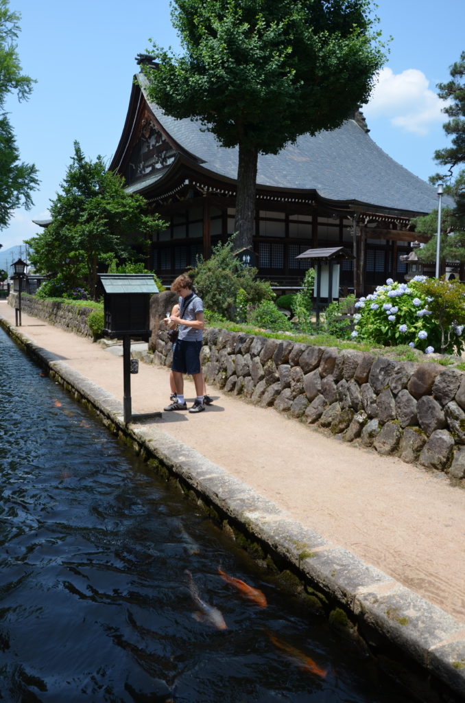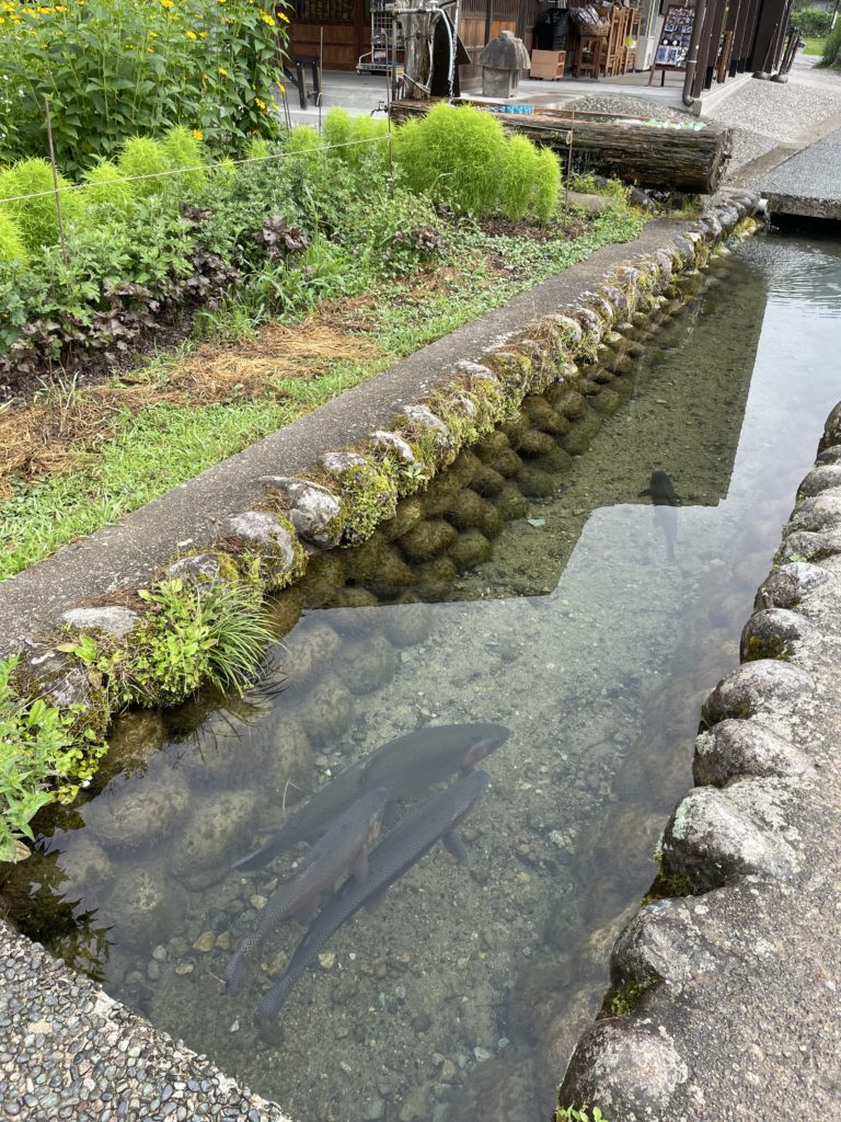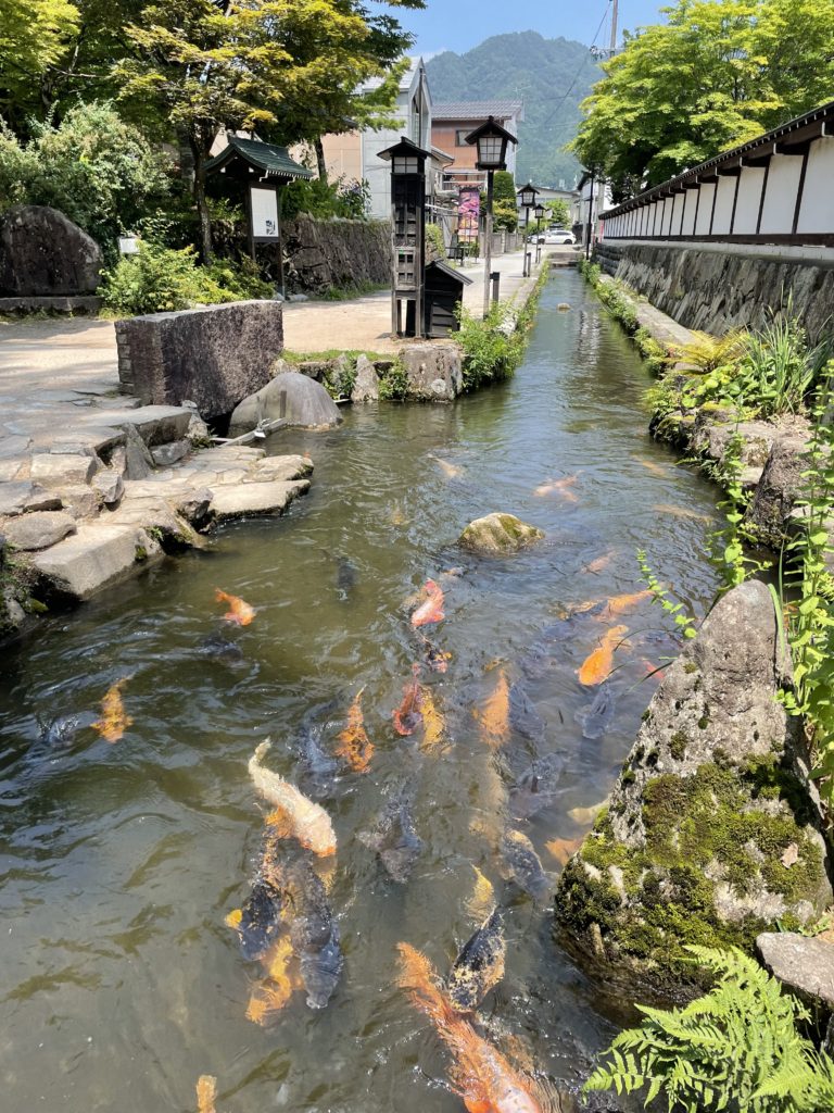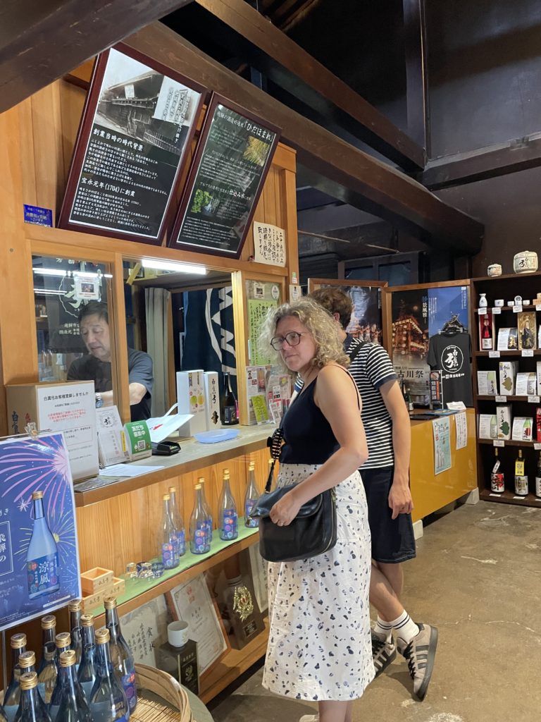 Nous poursuivons notre balade dans les ruelles d’Hida, drainées par de petits canaux à l’eau cristalline dans lesquels frayent d’énormes carpes. Près du remarquable temple bouddhiste Honkō-ji, nous nous posons au café Kanokoyapour déguster d’étonnantes gaufres liégeoises dans une salle climatisée et colorée. Hida est également réputée pour sa production de saké. Une visite s’impose dans les distilleries locales, la Kaba Sake Brewery et la Hourai Sake Brewer Watanabe Shuzoten pour une dégustation et quelques achats.