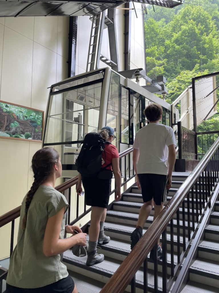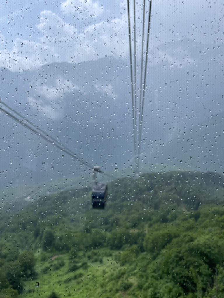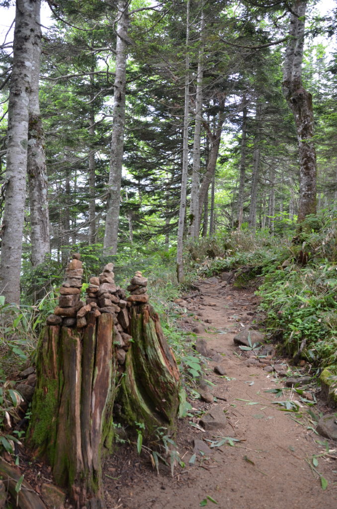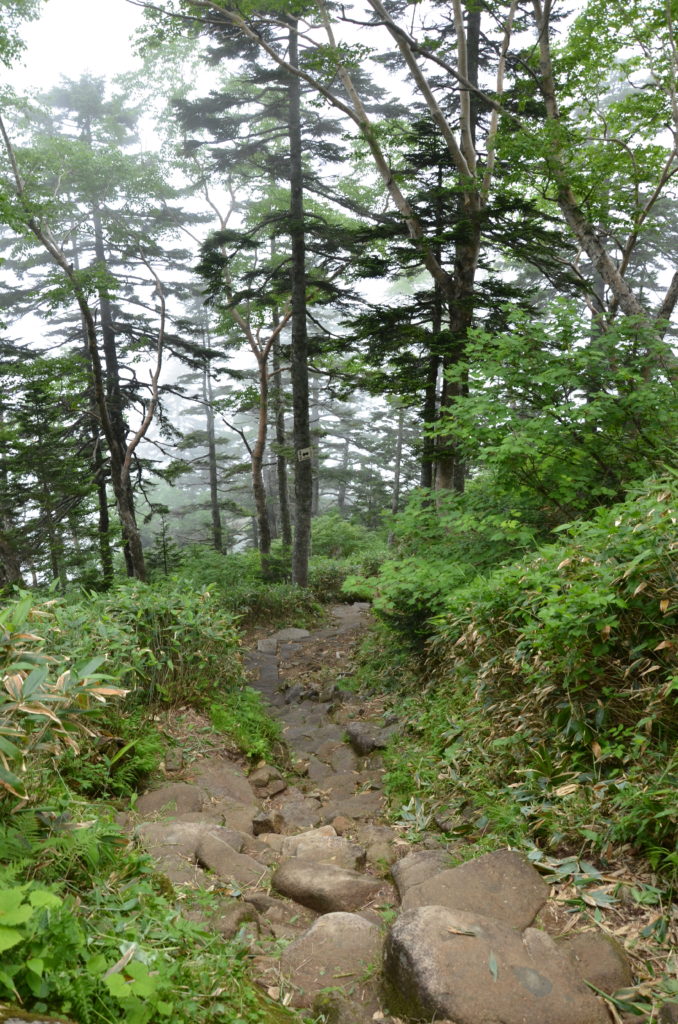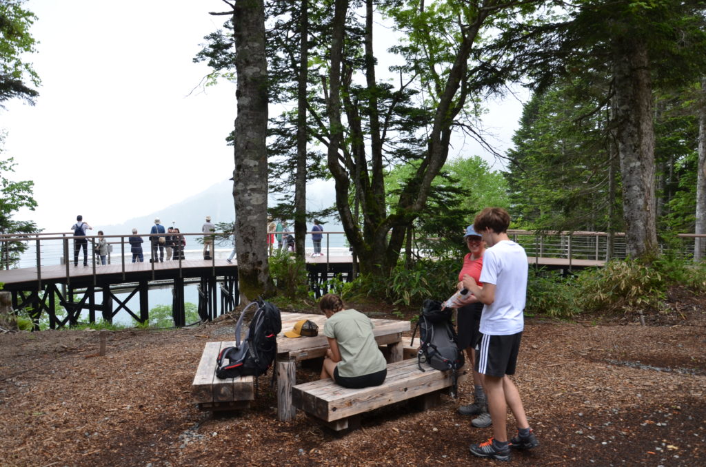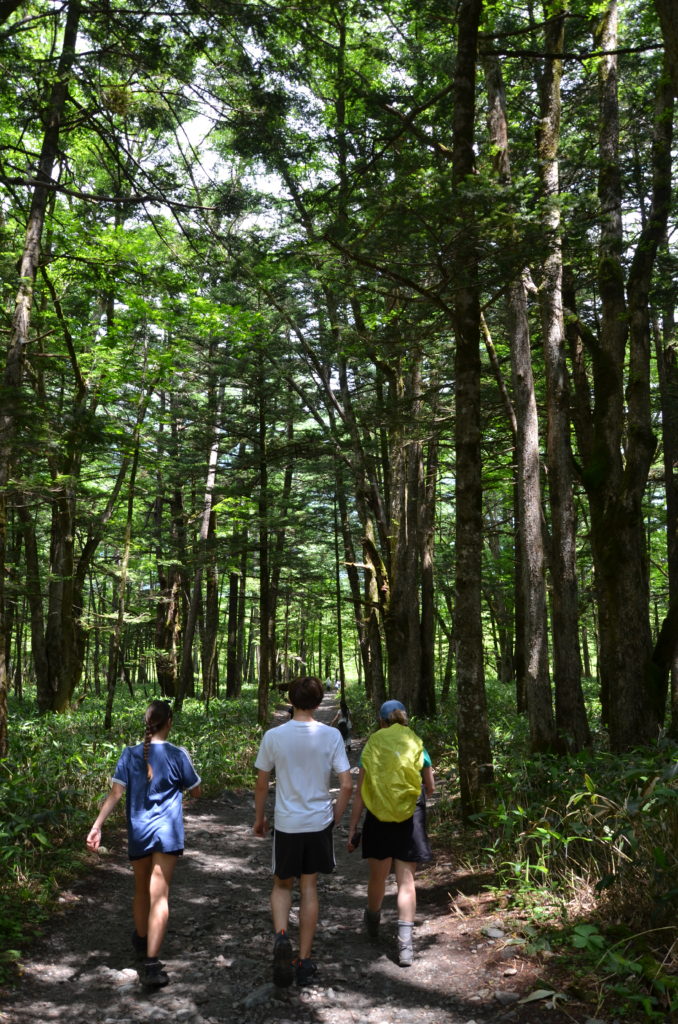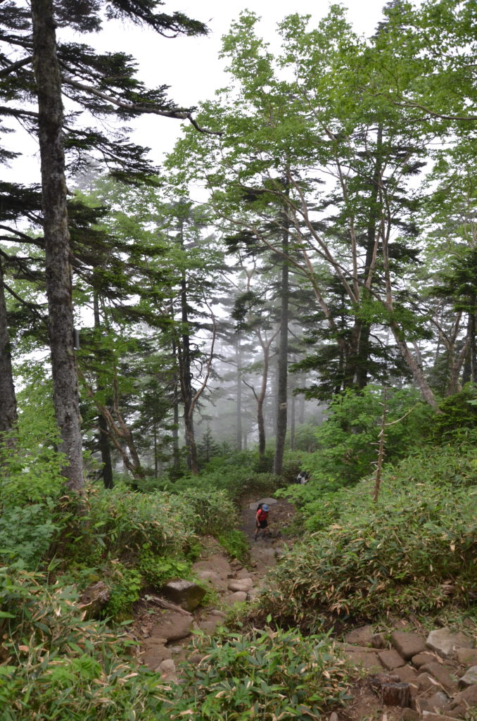 Jour 10 | Hida <> Shinidaka : adeptes de rando alpine, nous avions envie de goûter à la montagne japonaise. Il faut cependant composer avec la chaleur ambiante qui nous dissuade d’effectuer une trop longue ascension. Nous nous rendons au téléphérique Shinhotaka Ropeway qui va nous épargner une montée trop éreintante, et nous propulser directement à 2 156 mètres d’altitude. Nous constatons que l’accès au téléphérique peut se faire également par la station intermédiaire, équipée d’un grand parking à proximité. Nous arrivons à la station supérieure de Nishihotakaguchi où a été aménagé un large deck d’observation mais la vue sur les sommets est partiellement bouchée par des nuages persistants. Nous nous engageons alors sur le sentier balisé qui mène au refuge Nishiho Hut. Nous traversons une épaisse forêt, dense et humide, ce qui est assez surprenant à cette altitude élevée. Nous croisons plusieurs randonneurs japonais, souriants et suréquipés, reconnaissables aux tintements de leurs clochettes pour éloigner les ours… Au bout d’une heure trente d’efforts, nous atteignons le refuge, posé sur un col qui permet de prendre la mesure du massif. Cela donne envie d’en faire plus mais il nous faudrait plusieurs jours pour parcourir les différents sommets. L’averse nous a rattrapé, et nous trouvons refuge dans la hutte autour d’un café et d’un chocolat chaud. Le retour s’effectue par le même sentier, rendu glissant par l’averse récente. La descente en téléphérique nous permet d’admirer le massif enveloppé par d’épais nuages.