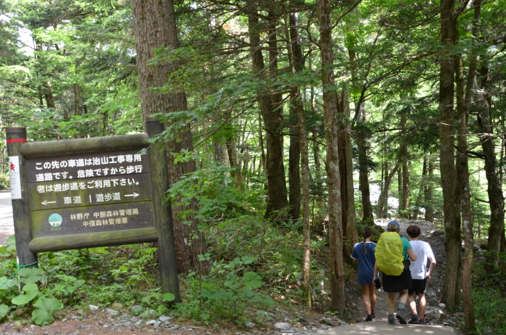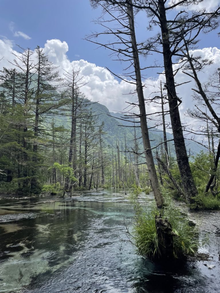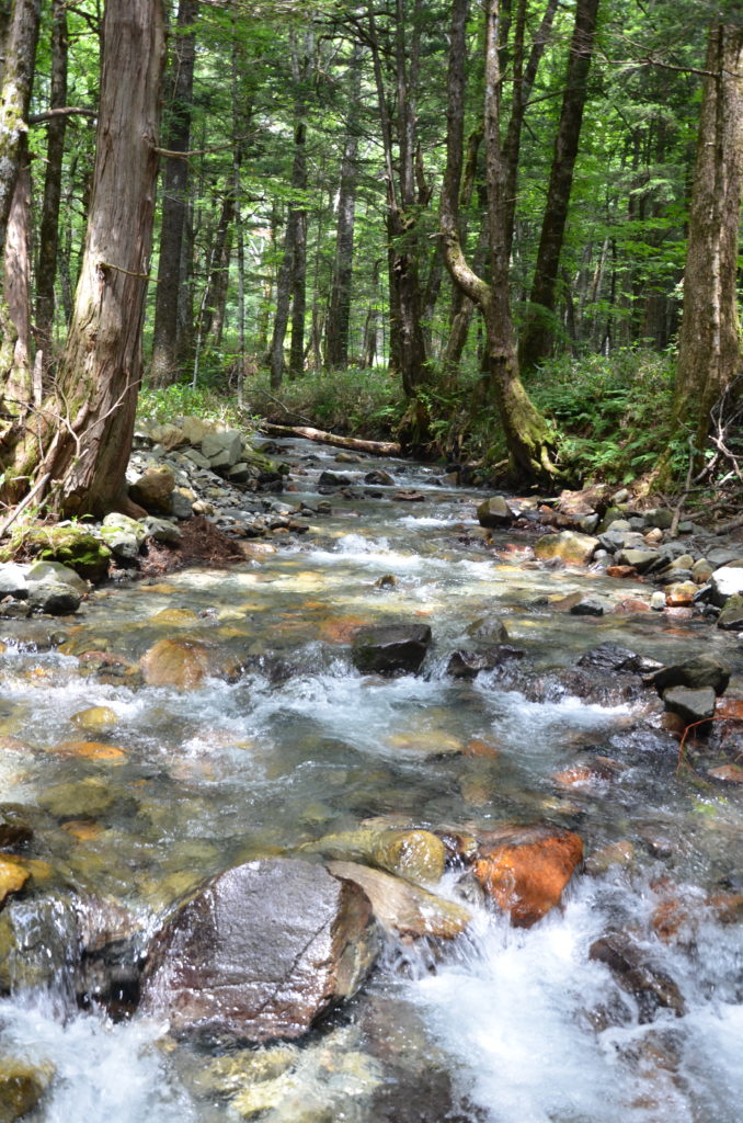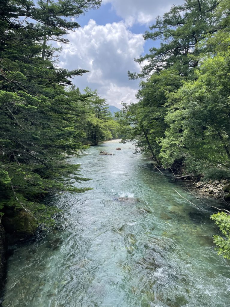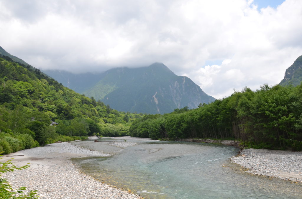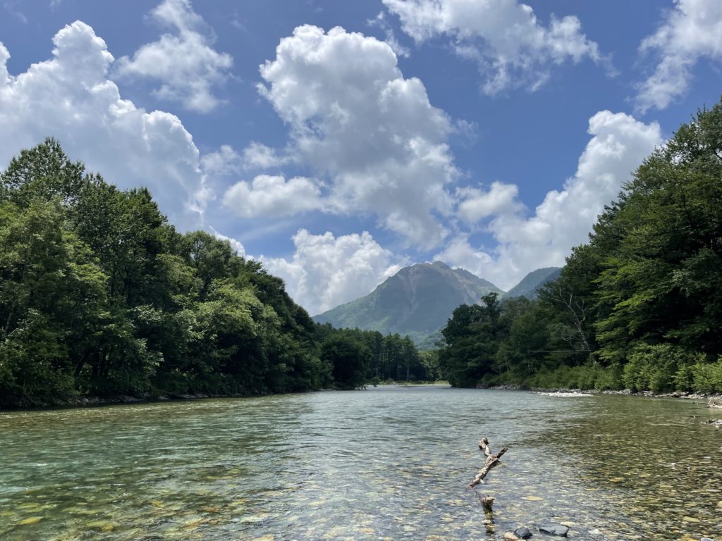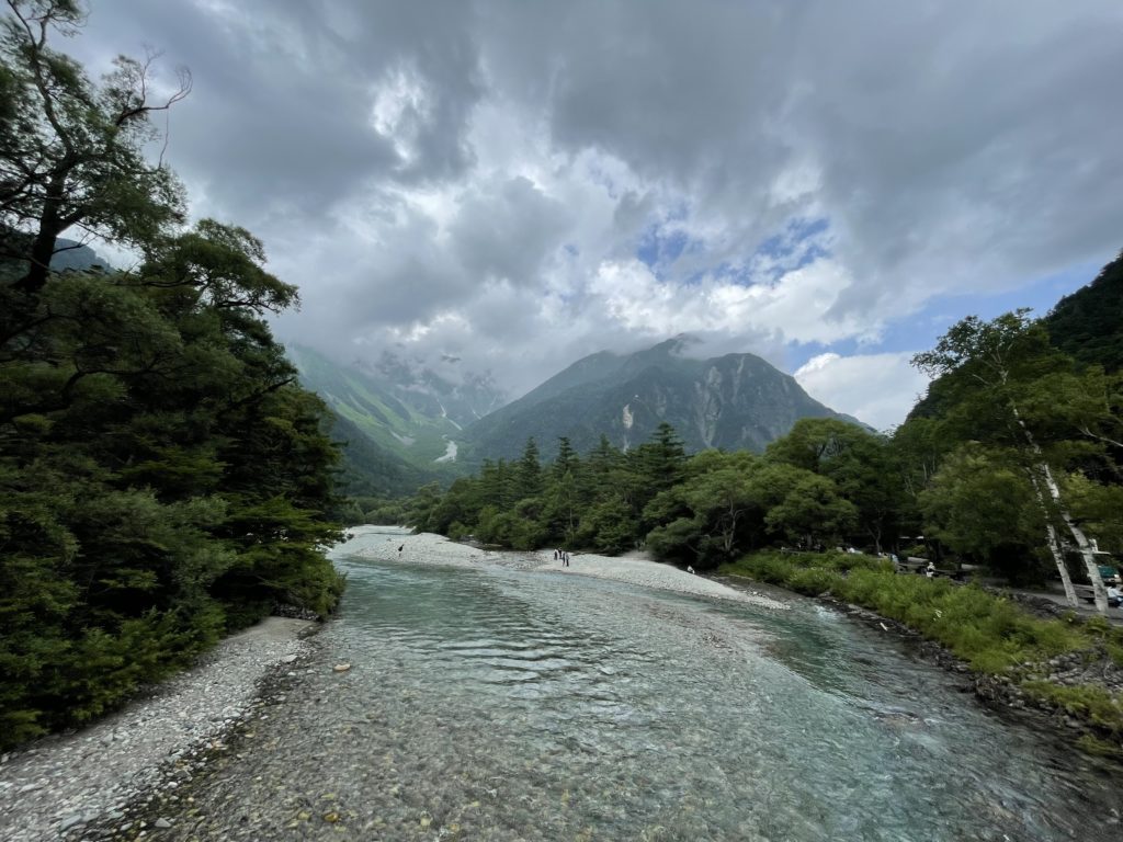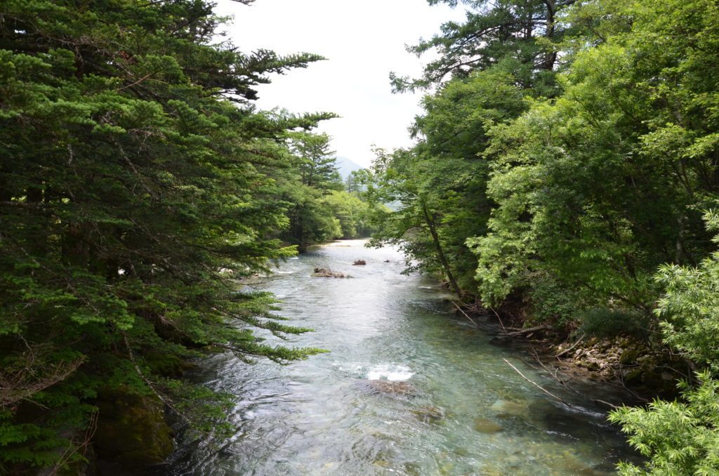 Jour 11 | Hida <> Kamikochi : nous prenons la direction de Kamikochi, une vallée forestière de 15 kilomètres située le long de la rivière Azusa, à une heure de route d’Hida. Le plateau de Kamikochi se trouve entre 1 400 et 1 600 mètres d’altitude, avec des sommets atteignant plus de 3 000 mètres pour les massifs environnants. C’est l’un des parcs les plus fréquentés du Japon. Son accès est strictement réglementé et fermé aux automobiles. Il faut donc emprunter une (onéreuse) navette en bus après avoir stationné notre véhicule sur un parking payant. La vallée fait également office de point de départ parfait pour des longues randonnées pour atteindre les sommets montagneux connus de la région : Yake-dake, Hotaka-dake et Yariga-take.Pour cette journée, nous prévoyons de faire la balade d’une douzaine de kilomètres qui longe la rivière d’un côté puis de l’autre, agrémentée de paysages magnifiques. Plusieurs refuges et restaurants ponctuent le parcours. Il y a pas mal de visiteurs mais cela reste supportable. On apprécie la fraîcheur apportée par la rivière !