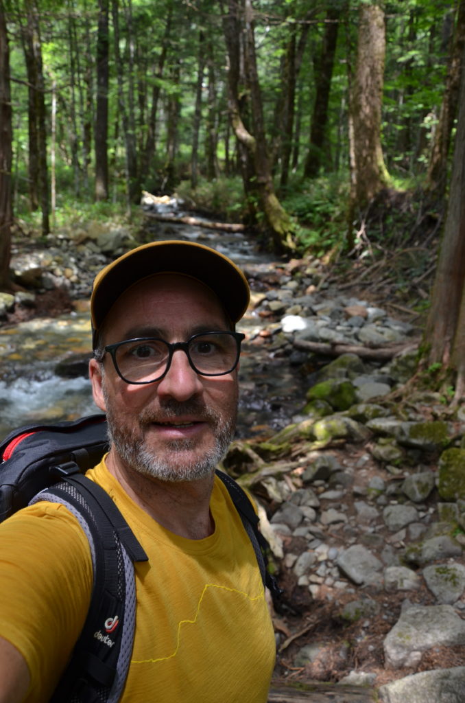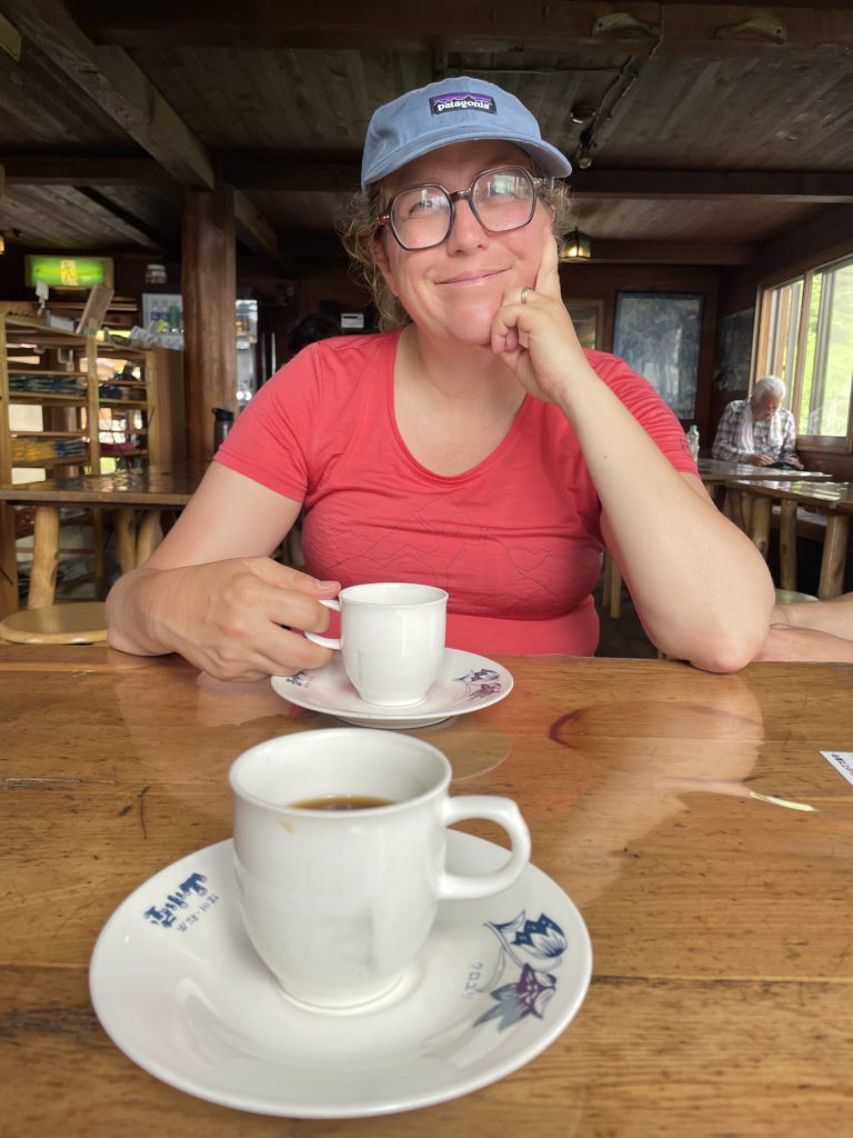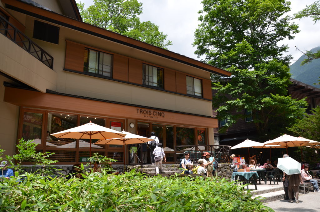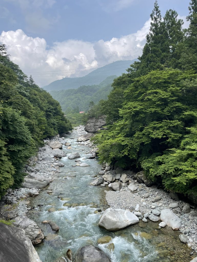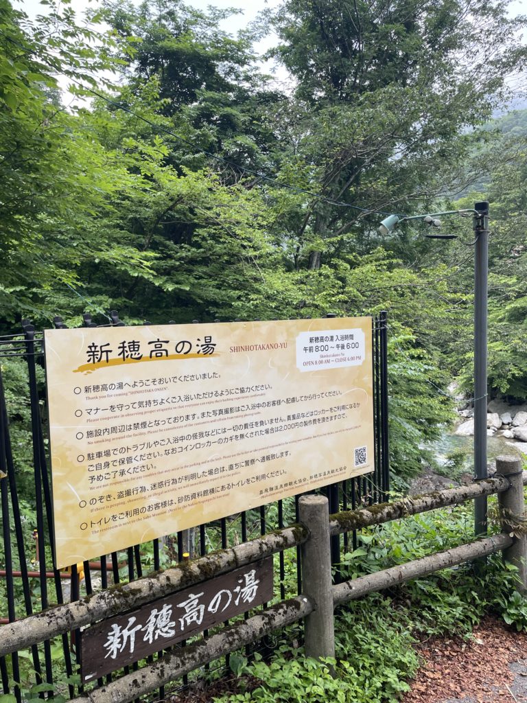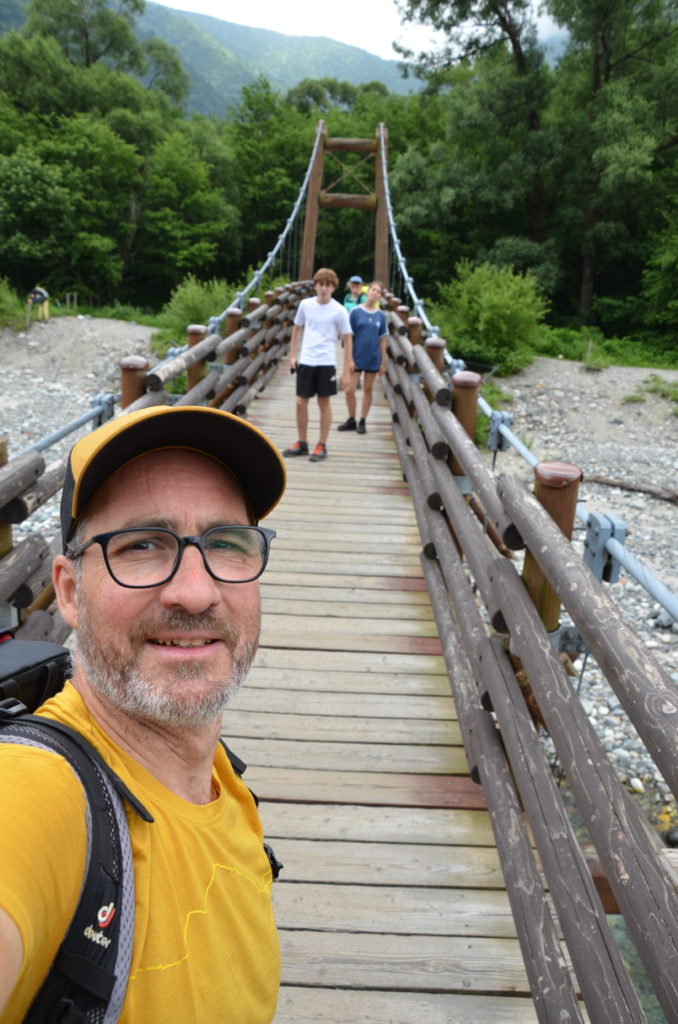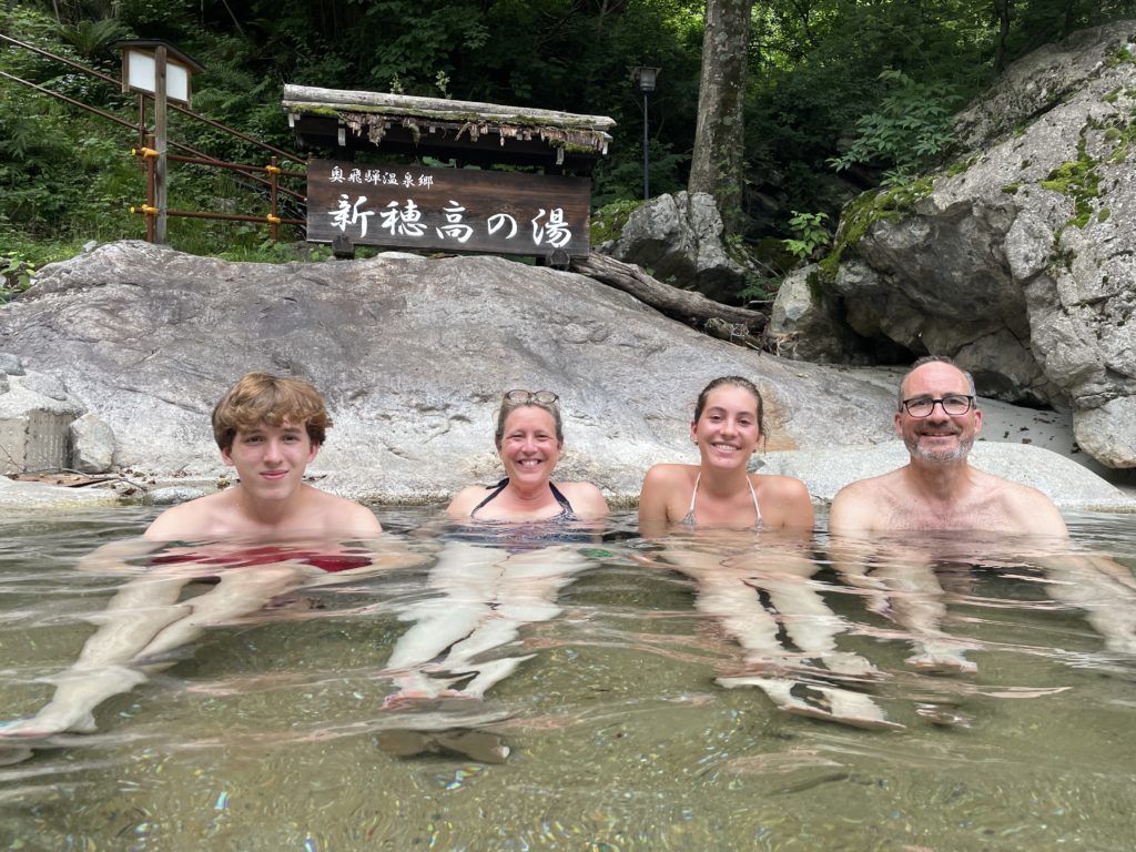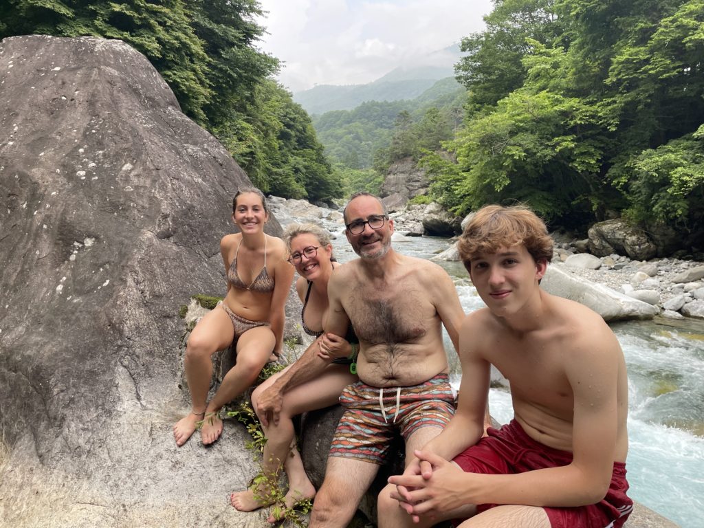 Cette rando nous a donné chaud et nous décidons de nous rafraichir au Shinhotaka Outdoor Public Onsen, un petit onsen aménagé au bord de la rivière Gamada. L’endroit est spartiate mais on y trouve un minuscule vestiaire et des bassins alimentés par une source d’eau chaude. Nous discutons avec un vieil homme japonais, plutôt affable, professeur de yoga, qui nous remettra sa carte de visite en partant.