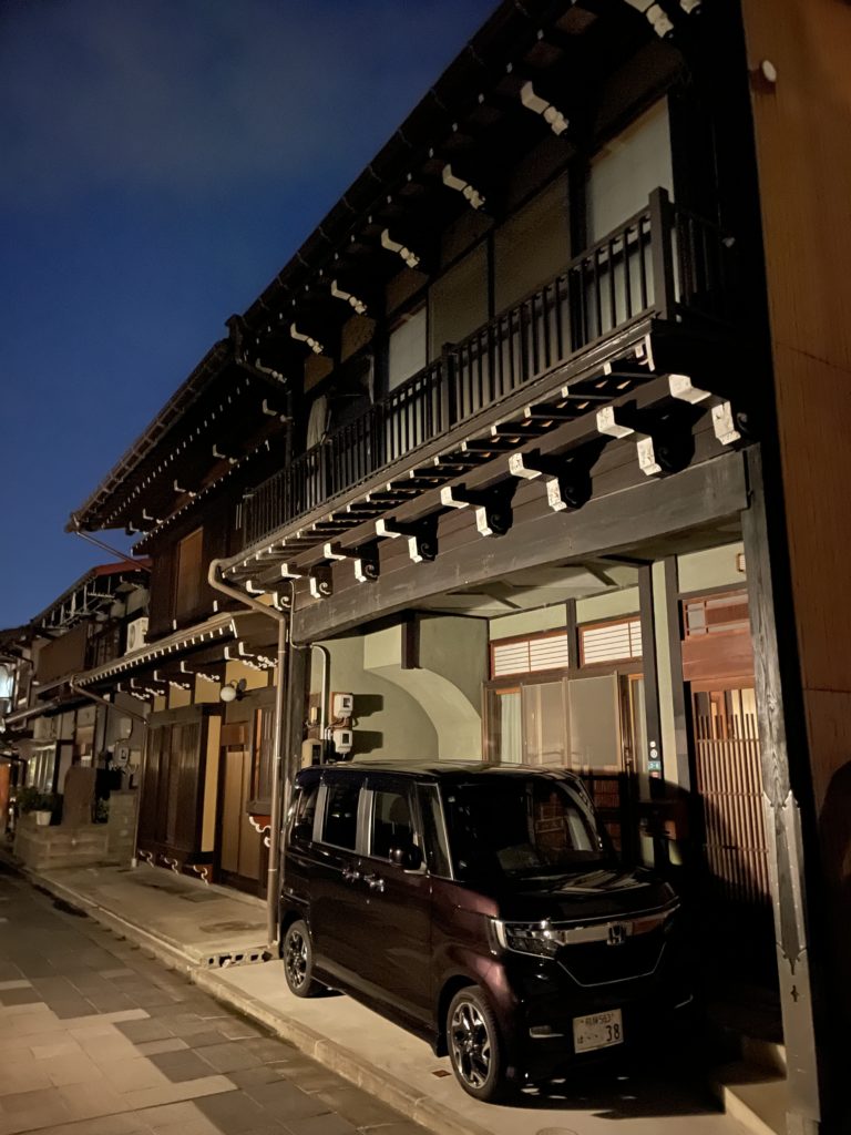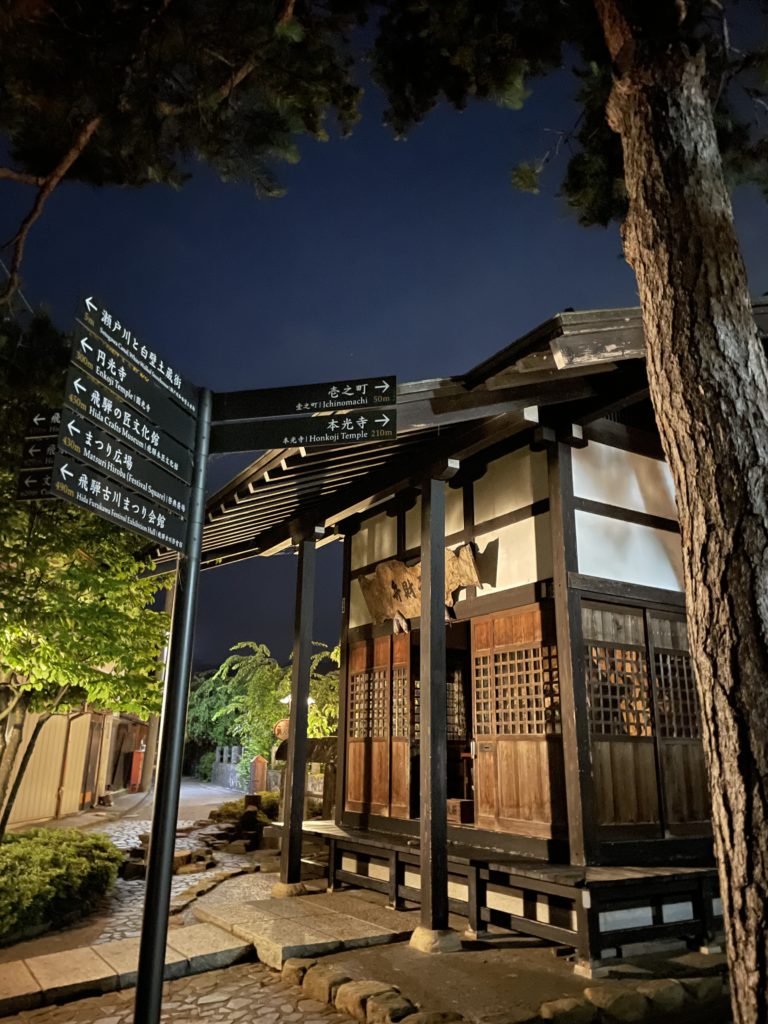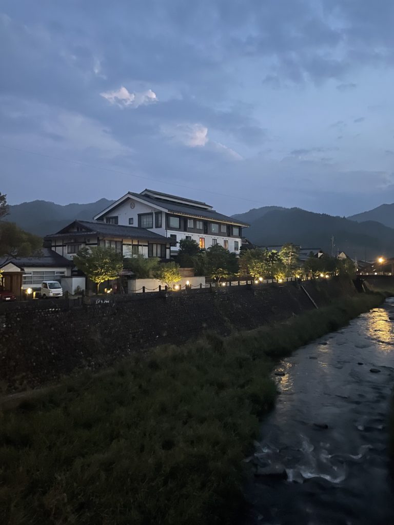 Nous rattrapons l’autoroute pour rejoindre la région de Takayama au cœur des Alpes japonaises. Les quatre voies sont tantôt suspendues sur de vertigineux viaducs, tantôt s’engouffrent dans de longs tunnels qui transpercent les montagnes couvertes de végétation luxuriante. Nous arrivons dans la petite ville d’Hida qui sera notre camp de base pour les quatre prochains jours. Nous prenons place dans une maison typique du centre-ville, la Yoshiki no Sato Furukawa, accueilli par son charmant propriétaire. Il est déjà tard, nous décidons de dîner dans un chaleureux Isakaya situé à deux pas avant de faire une balade nocturne dans le village.