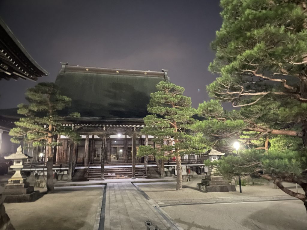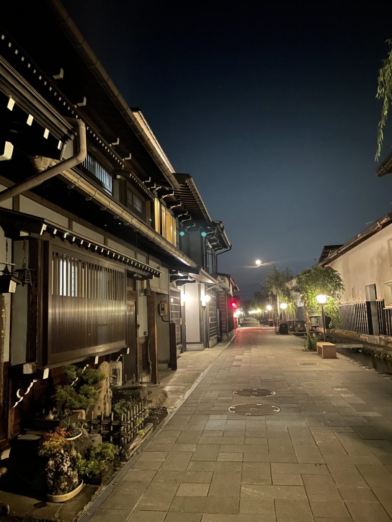 Emballés par le restaurant de la veille, nous y retournons avant de profiter de la lune rousse dont la lumière apporte une teinte particulière aux ruelles et mystérieux temples d’Hida.