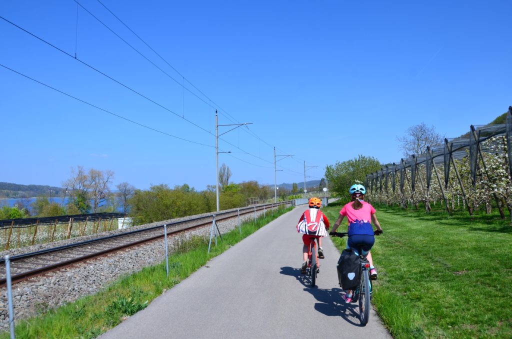 Frontière naturelle entre la Suisse et l’Allemagne, le Rhin sépare les cantons helvètes d’Argovie et de Thurgovie du Land allemand de Baden-Württemberg. Les douces collines verdoyantes de Thurgovie-Bodensee, cousues de milliers de pommiers, descendent jusqu’aux rives du lac de Constance, dont le tour séduit bon nombre d’amateurs de la petite reine. Cette vaste région arboricole produit principalement des pommes, le fruit préféré des Suisses !