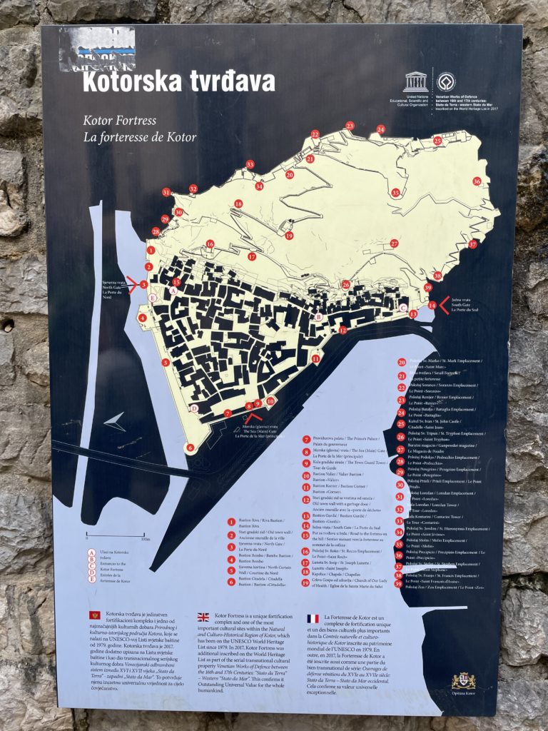 JOUR 3 | Kotor et Tivat : Perast est situé à seulement une quinzaine de kilomètres de la vieille ville de Kotor, inscrite au patrimoine mondial de l’UNESCO. Là encore, la circulation est dense et il n’est pas aisé de trouver un stationnement. Il est tout juste 10h00 et les parkings à proximité de la vieille ville affichent déjà complets… On finit par trouver une place à 15mn à pied de la forteresse. Kotor est la ville la plus ancienne du Monténégro. C’est effectivement un bel ensemble architectural avec ses rues pavées, ses bâtiments historiques et ses imposantes églises. Nous commençons par faire le tour des remparts qui offrent de beaux points de vue sur la vieille ville. Nous poursuivons en nous perdant dans ses ruelles, passant par ses remarquables églises. La ville est très touristique, on en fait finalement vite le tour, passant rapidement devant les innombrables boutiques de souvenirs, cafés et autres glaciers.