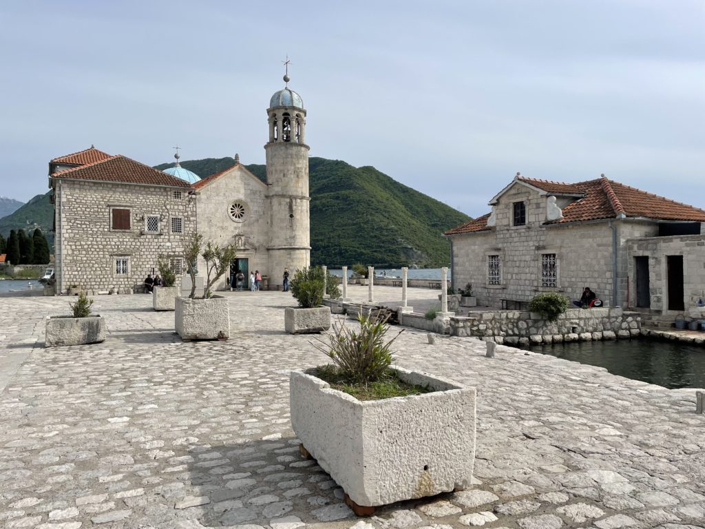 JOUR 2 | Perast : après un excellent petit-déjeuner à l’hôtel, nous partons découvrir Perast sous un ciel gris. Selon les guides touristiques, c’est l’un des lieux les plus charmants et les mieux conservés du Monténégro, niché dans la baie de Kotor. Ici, le temps semble s’être arrêté, les maisons de pierre et les palais cossus nous replongent dans l’époque de l’Albanie vénitienne. Nous attendrons cependant un rayon de soleil pour nous rendre sur son île-église Notre-Dame des Rochers, édifiée sur un îlot en face du village.