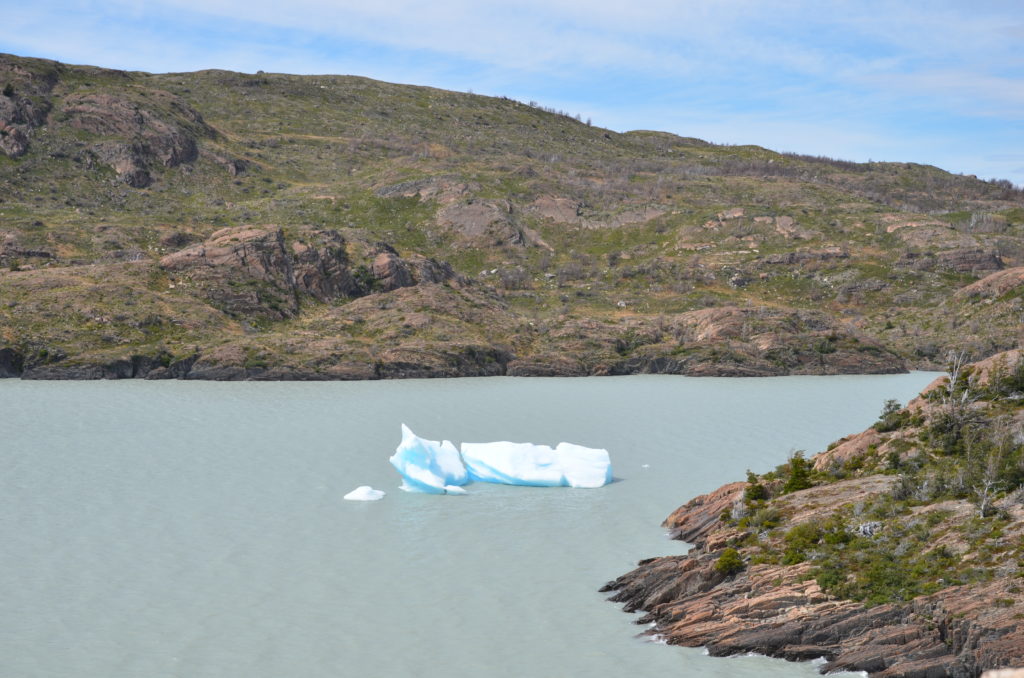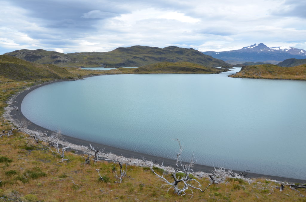 Puis nous partons pour une première randonnée dans le parc, depuis le Salto Grande jusqu’au Mirador Cuernos, au pied des géants de pierre. En chemin, nous remarquons des squelettes d’arbustes calcinés, stigmates de précédents incendies de forêt. Nous pique-niquons au bord du lac Nordenskjöld, véritable miroir d’eau glaciaire dans lequel se reflètent les imposants Cuernos.