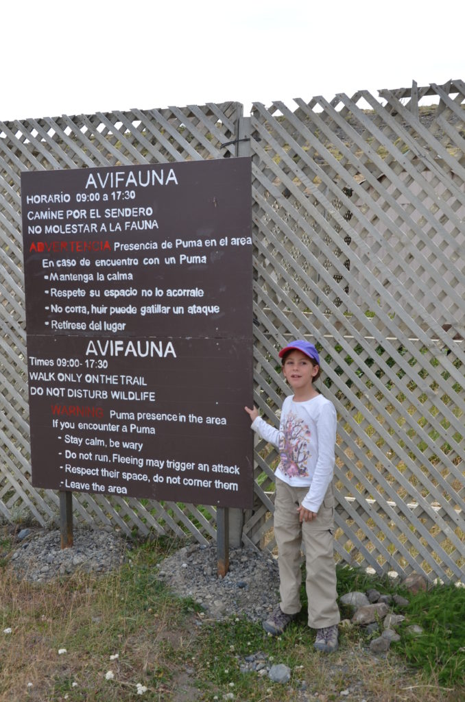 L’après-midi, nous traversons le parc d’est en ouest par la piste principale pour nous rendre à la seconde entrée officielle du parc, la Porteria Lago Sarmiento. Nous y effectuons une nouvelle balade, à la rencontre des Guanacos, cousin sauvage du lama, très répandus dans cet environnement montagnard. C’est aussi une zone fréquentée par des pumas, la prudence est de mise, même si les rangers du parc nous informe qu’ils n’en ont pas vu aujourd’hui.