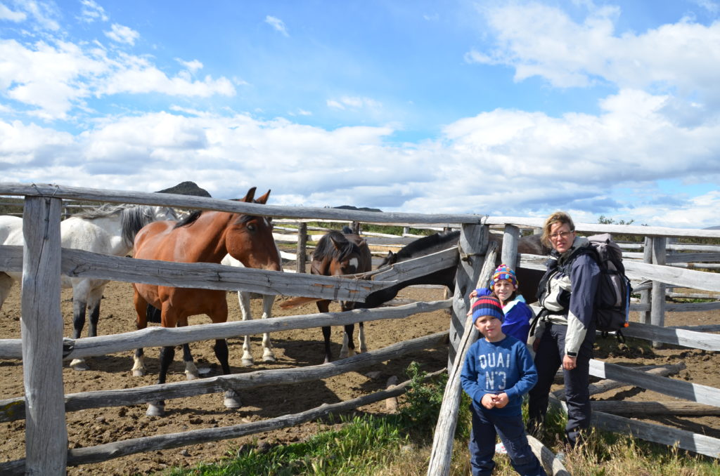 Jour 4 | Torres del Paine > Estancia Baranca : pour cette dernière journée, nous nous rendons dans le secteur Las Torres pour effectuer une randonnée jusqu’au Refugio Chileno. Sur le sentier qui serpente dans une profonde vallée, nous croisons quelques caballeros chargés de ravitailler le refuge. Nous avions espéré nous rendre jusqu’au Mirador base de las Torres, un petit lac glaciaire situé au pied des Torres, mais l’idée était un peu ambitieuse avec des enfants de 6 et 8 ans… Nous pique-niquons au bord de la rivière, près du camping et du refuge, très fréquentés en cette saison par les randonneurs du « W », le fameux itinéraire de trekking long de 76 km qui relie en 4-5 jours les principaux attraits du parc.