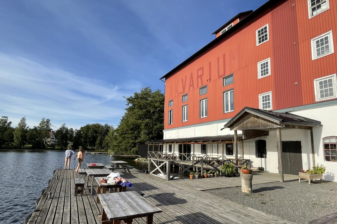 En route vers Bengtsfors, nous faisons étape dans un autre lieu tout aussi surprenant que l’Upperud 9:9. Il s’agit du centre culturel Notquite qui occupe une ancienne fabrique à papier. Le tiers-lieu accueille une galerie d’art contemporain aménagée dans les anciens entrepôts de l’usine, une boulangerie artisanale et un agréable café-restaurant Veggie où nous déjeunons. Les Suédois excellent vraiment pour donner une seconde vocation à leurs friches industrielles !