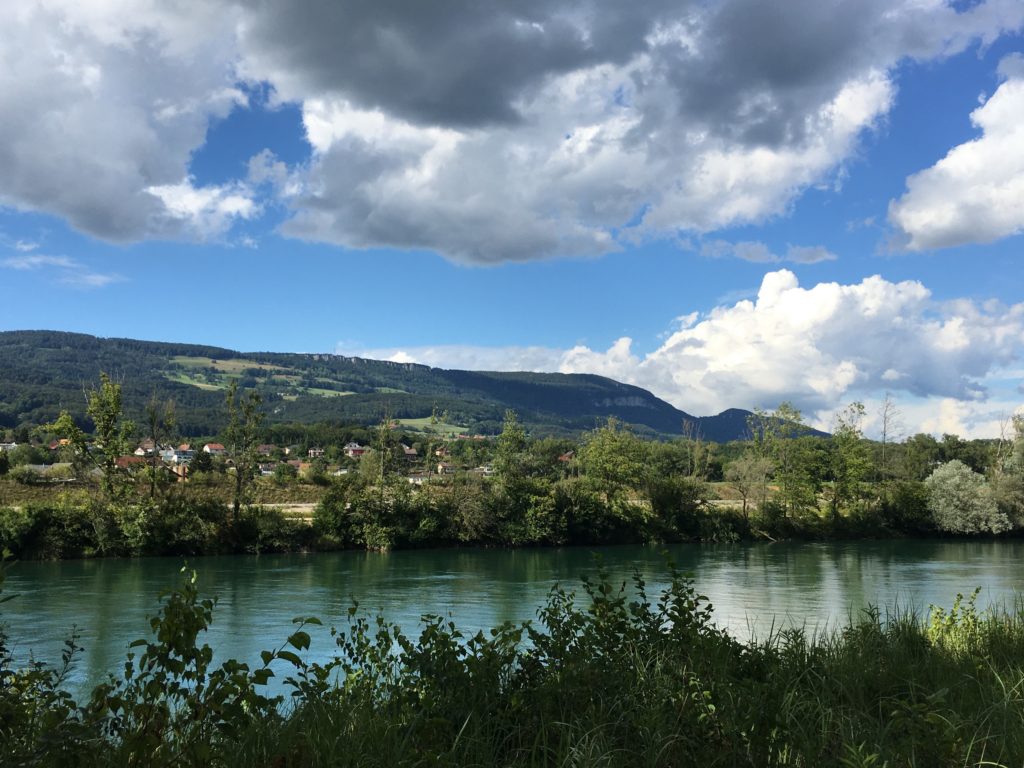Nous quittons Baden au petit matin mais rejoignons Brugg par le train pour économiser une douzaine de kilomètres car il nous reste près de 90 km à parcourir pour atteindre Soleure ! Nous prenons la direction d’Aarau, capitale du canton de l’Argovie. Les nombreuses centrales électriques se succèdent sur l’Aar, permettant de passer aisément d’une rive à l’autre.