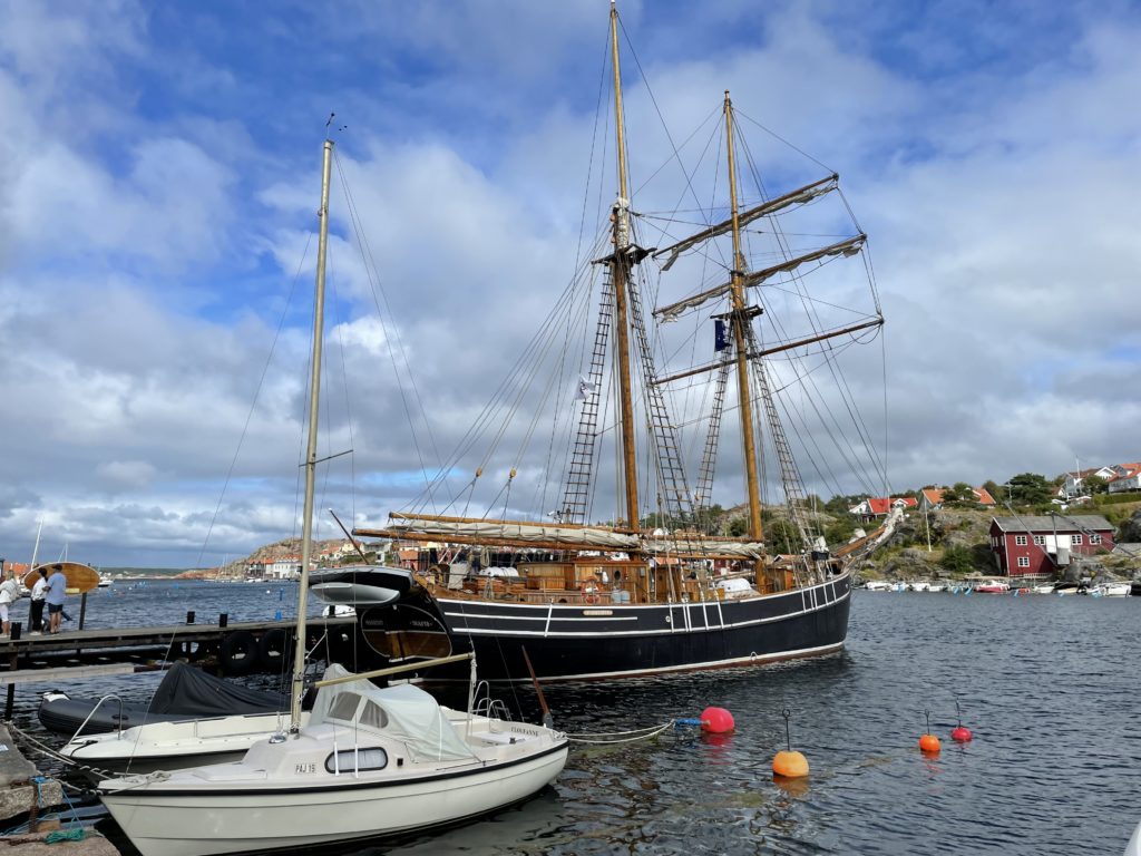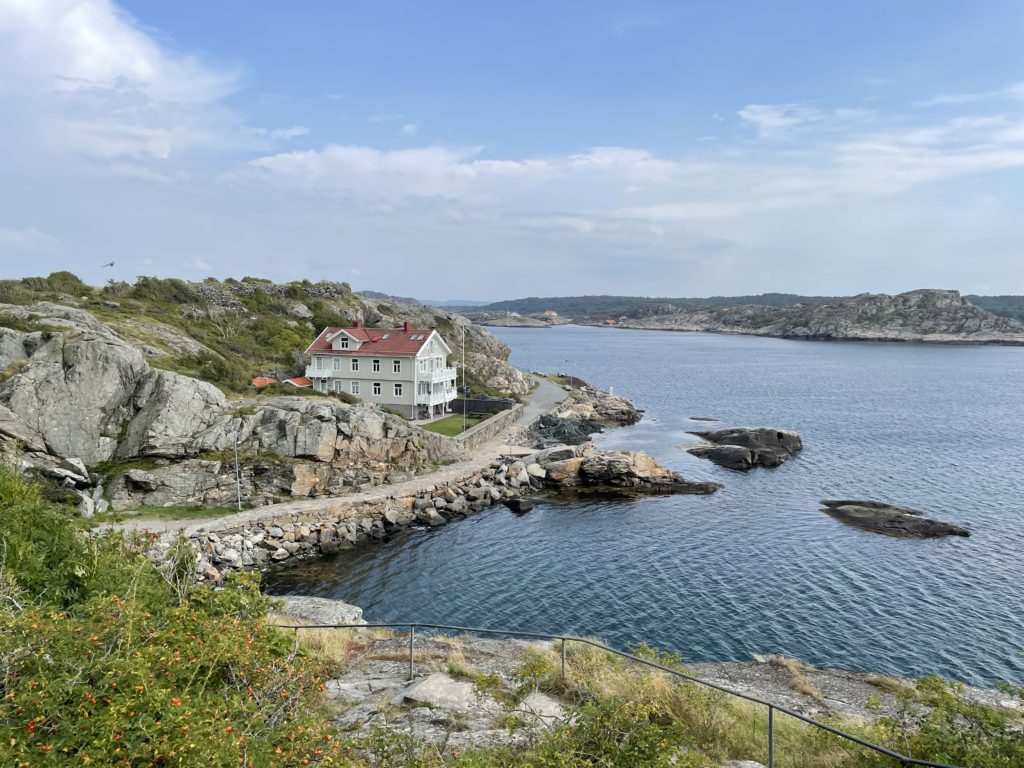 Nous arrivons à Fjällbacka, l’une des destinations phares de la côte Ouest.Une fois n’est pas coutume, nous avons réservé un petit appartement via Airbnb faute de trouver un hébergement abordable dans cette région touristique prisée durant l’été. L’appartement est plutôt contemporain et fonctionnel, à deux pas du centre-ville, et dispose d’un stationnement, bien pratique en période estivale. C’est un excellent point de chute pour rayonner dans la région. Nous partons à la découverte de Fjällbacka, son port pittoresque et coloré, ses innombrables bateaux de plaisance et de pêche. Puis nous poursuivons par une belle balade sur les hauteurs de la ville, en passant sous le fameux Kungsklyftan, curiosité géologique qui mène à des escaliers pour rejoindre le point de vue Vetteberget. L’endroit offre un panorama magnifique sur l’archipel. Nous redescendons vers notre quartier en passant faire quelques courses pour diner tranquillement dans notre appartement. C’est l’un des avantages de ces locations, car les restaurants suédois, d’autant plus dans les secteurs touristiques, peuvent vite représenter un budget considérable pour une famille.
