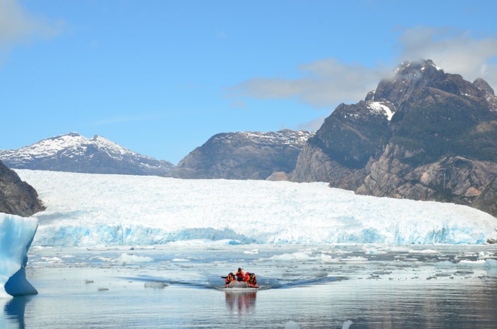 Des rotations en zodiac sont organisées afin de pouvoir approcher de plus près le glacier et naviguer au milieu des icebergs, tout en restant à bonne distance (300 m) du front, la chute d’immenses pans de glace pouvant provoquer de nombreux remous et faire chavirer les zodiacs.