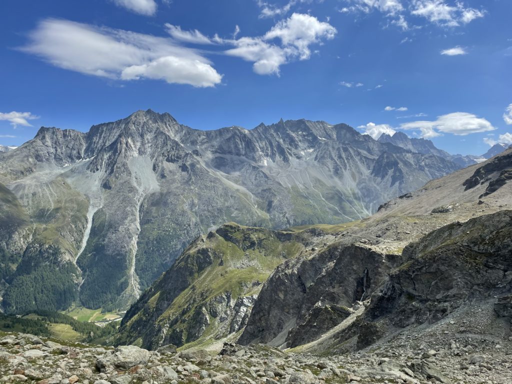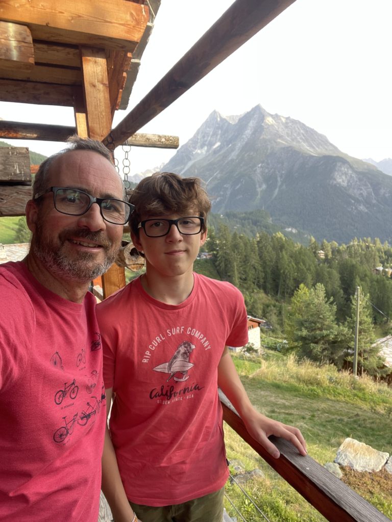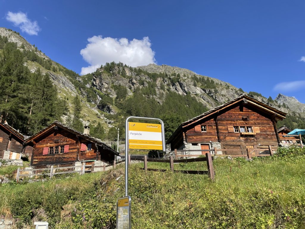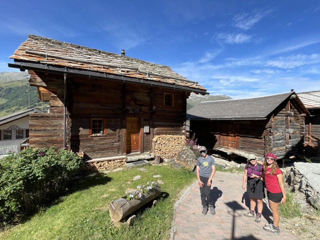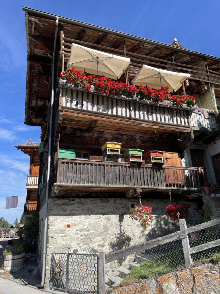 Durant nos 5 années en Suisse, nous étions déjà venus explorer le fond du Val d’Hérens pour skier à Arolla, un improbable domaine skiable isolé entre 2 000 et 3 000 mètres. Mais il nous tardait d’explorer cette région pendant l’été. En cette fin de saison estivale (la rentrée scolaire a lieu autour de la mi-août), nous avons trouvé le magnifique chalet La Grange, situé dans le hameau La Villa, au-dessus d’Évolène, à 1 800 mètres d’altitude. Cette grange-écurie a été transformée en habitation en 2010 et offre un confort ultra-moderne avec, depuis son balcon, une vue panoramique sur les Dents du Veisivi. Quoiqu’un peu à l’écart, c’est un confortable camp de base pour découvrir la vallée.