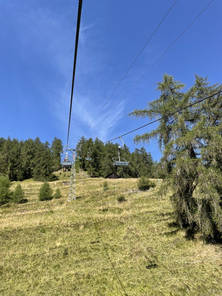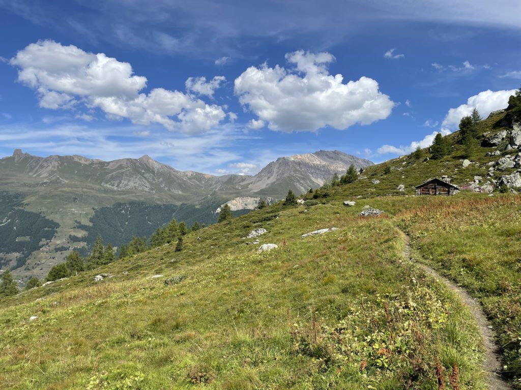 Nous découvrons la vallée en effectuant une première randonnée autour du Pic d’Artsinol qui surplombe le village d’Évolène. C’est là que se trouve le petit domaine de ski de la localité. Il faut emprunter l’unique et rustique télésiège qui part de Lanna pour monter 700 mètres plus haut à Chemeuille. De là, nous suivons un agréable chemin à niveau qui contourne la Pointe de Mandelon et rejoint les alpages de Mandelon à 2070 mètres d’altitude. Une buvette de montagne nous y attend et nous nous attablons autour d’un Rösti. Malgré la forte popularité des lieux, ce ne sont pas les meilleurs que nous ayons eu l’occasion de déguster. Nous rentrons par le même chemin et les enfants décident de redescendre à Évolène en kart. Sensations garanties !